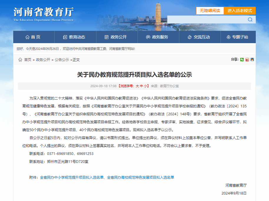 2024年9月,河南省教育厅下发“关于民办教育规范提升项目拟入选名单的公示”通知,“郑州城市职业学院耐火材料行业职业教育服务平台”成功入选河南省民办高校规范特色发展项目。