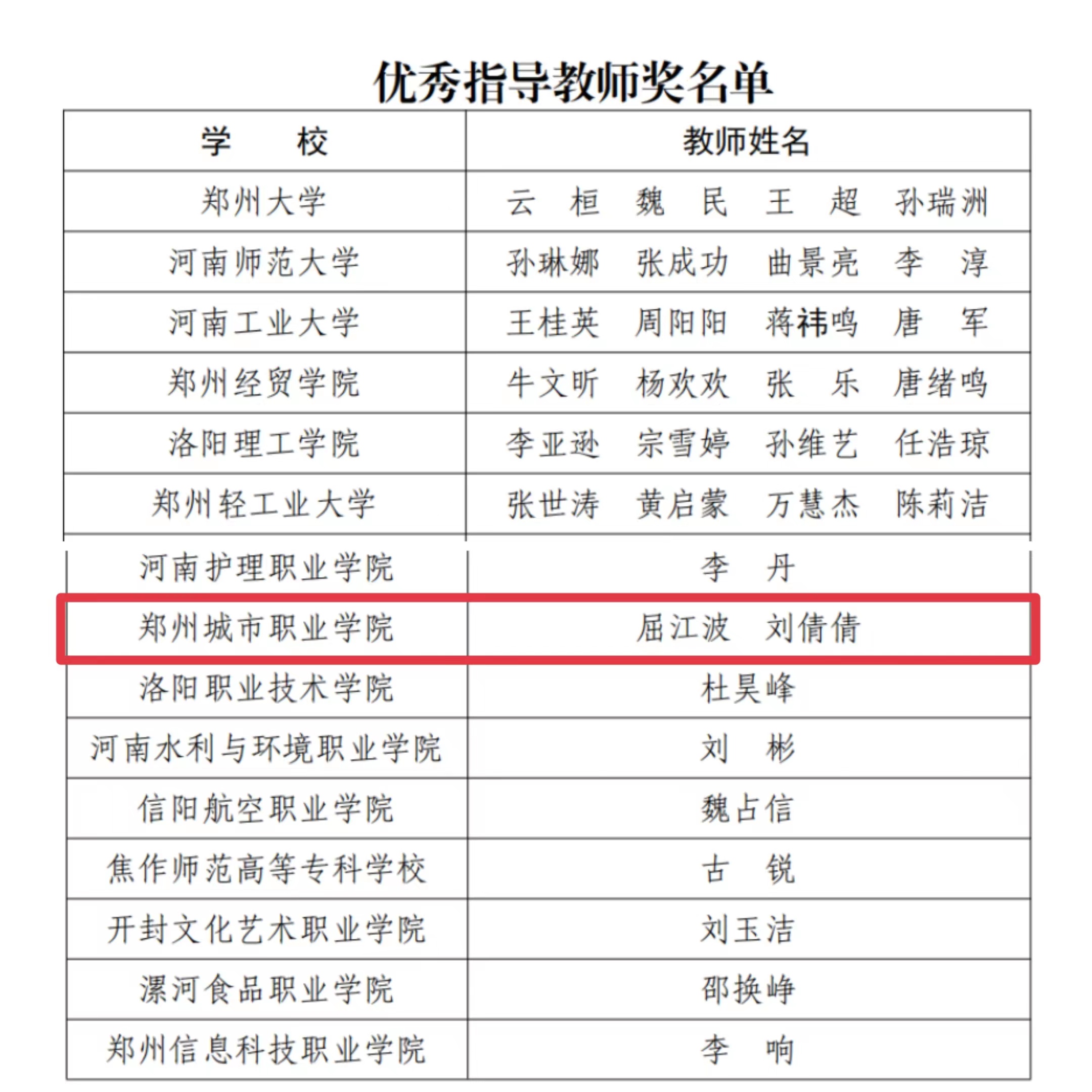 近日,中共河南省委教育工委、河南省教育厅下发《关于公布2023年全省大学生国家安全知识竞赛暨学生素养展示活动结果的通知》,我校教师屈江波、刘倩倩两位老师荣获“优秀指导教师奖”。
