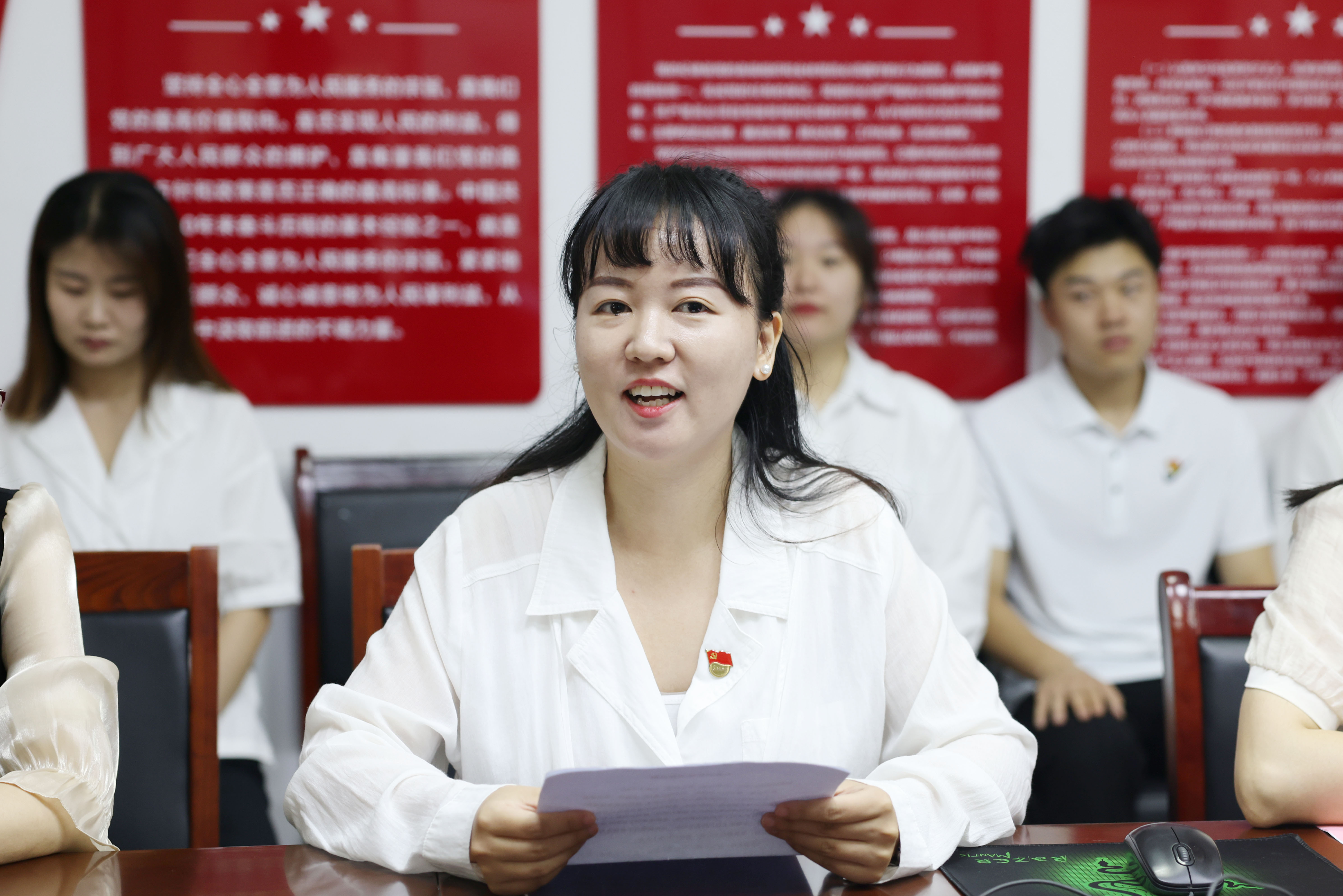 预备党员代表建筑工程学院张曼老师、发展对象代表商学院李静宇同学分别发言,表达了对党组织的深厚感情和为党的事业努力奋斗的决心。