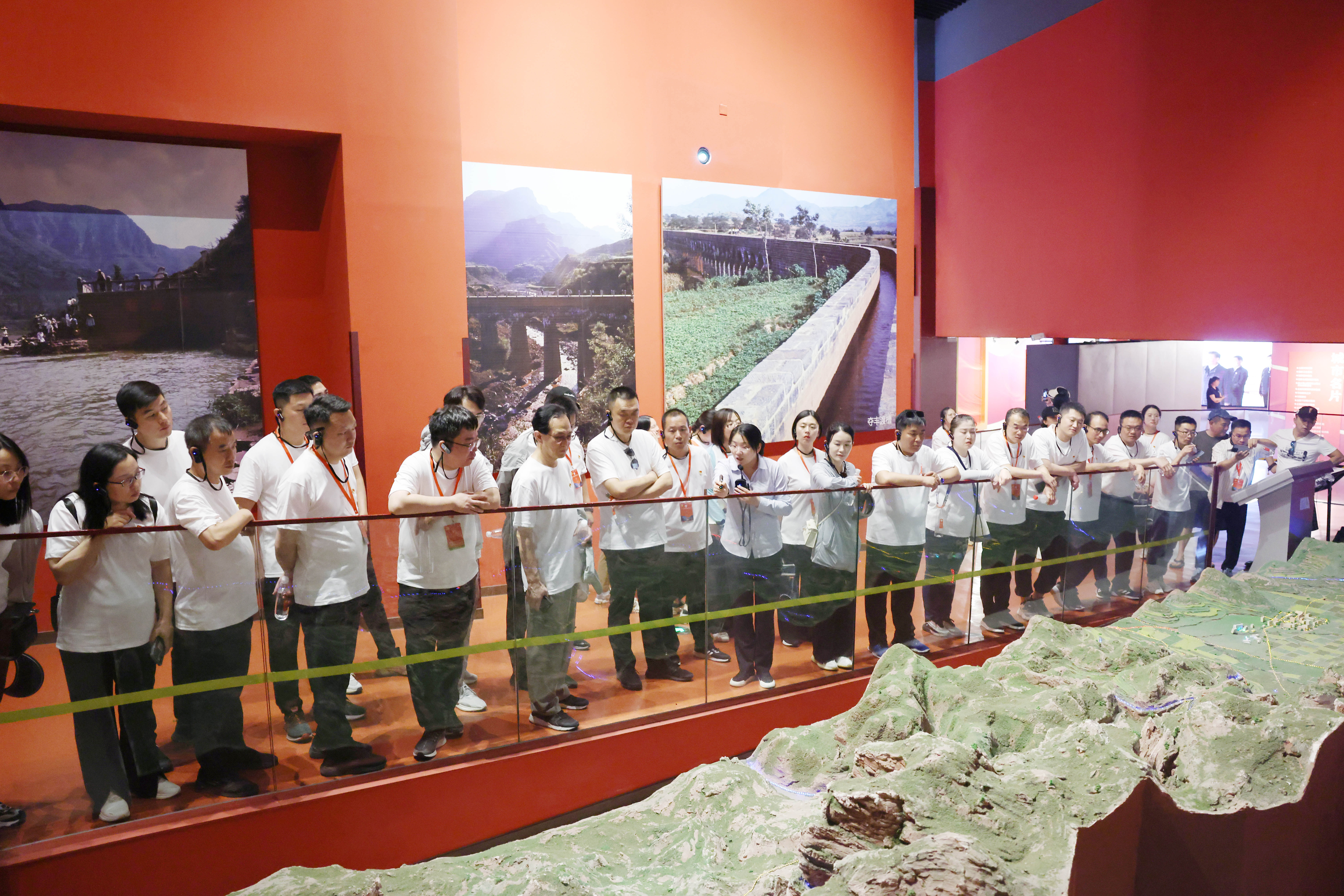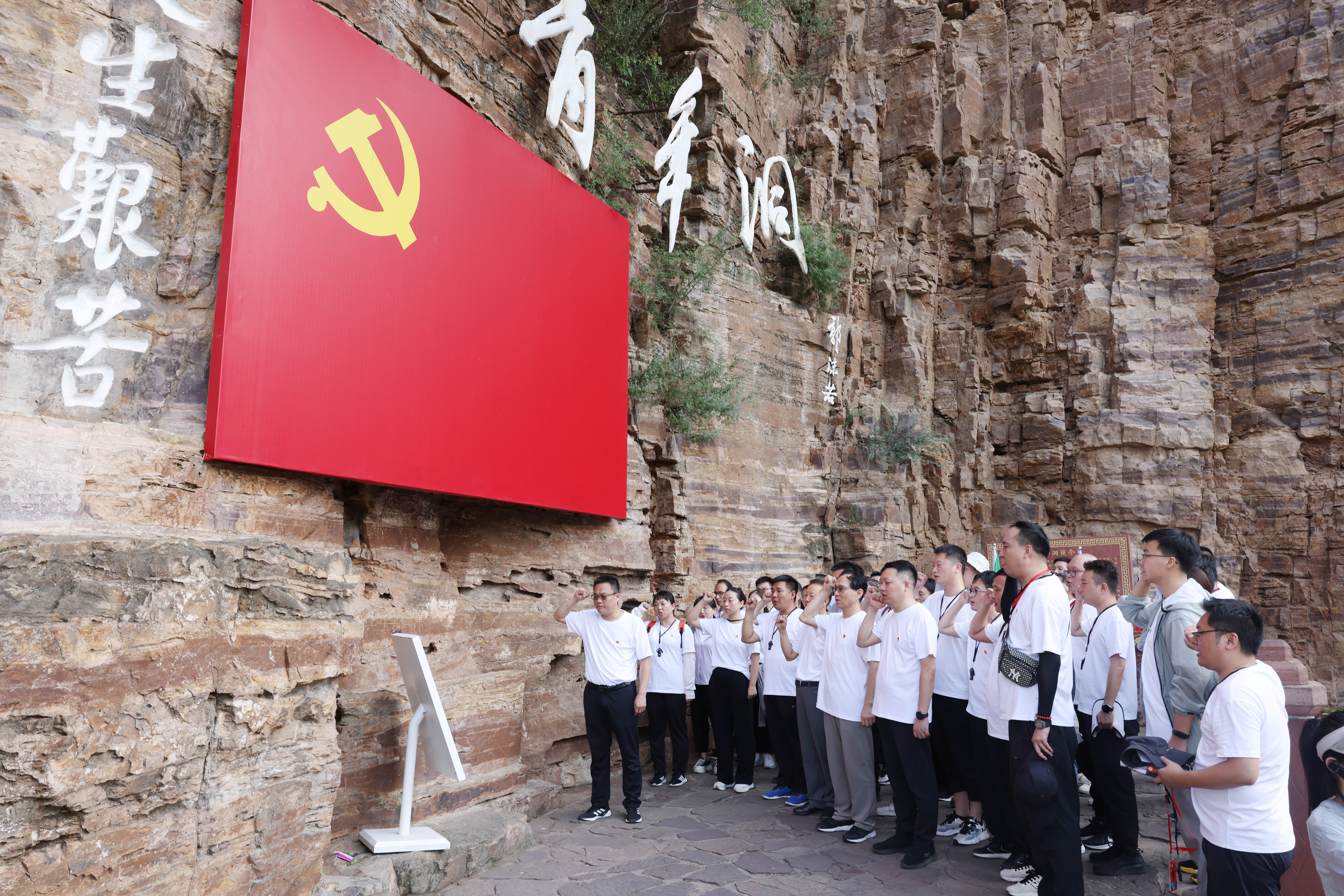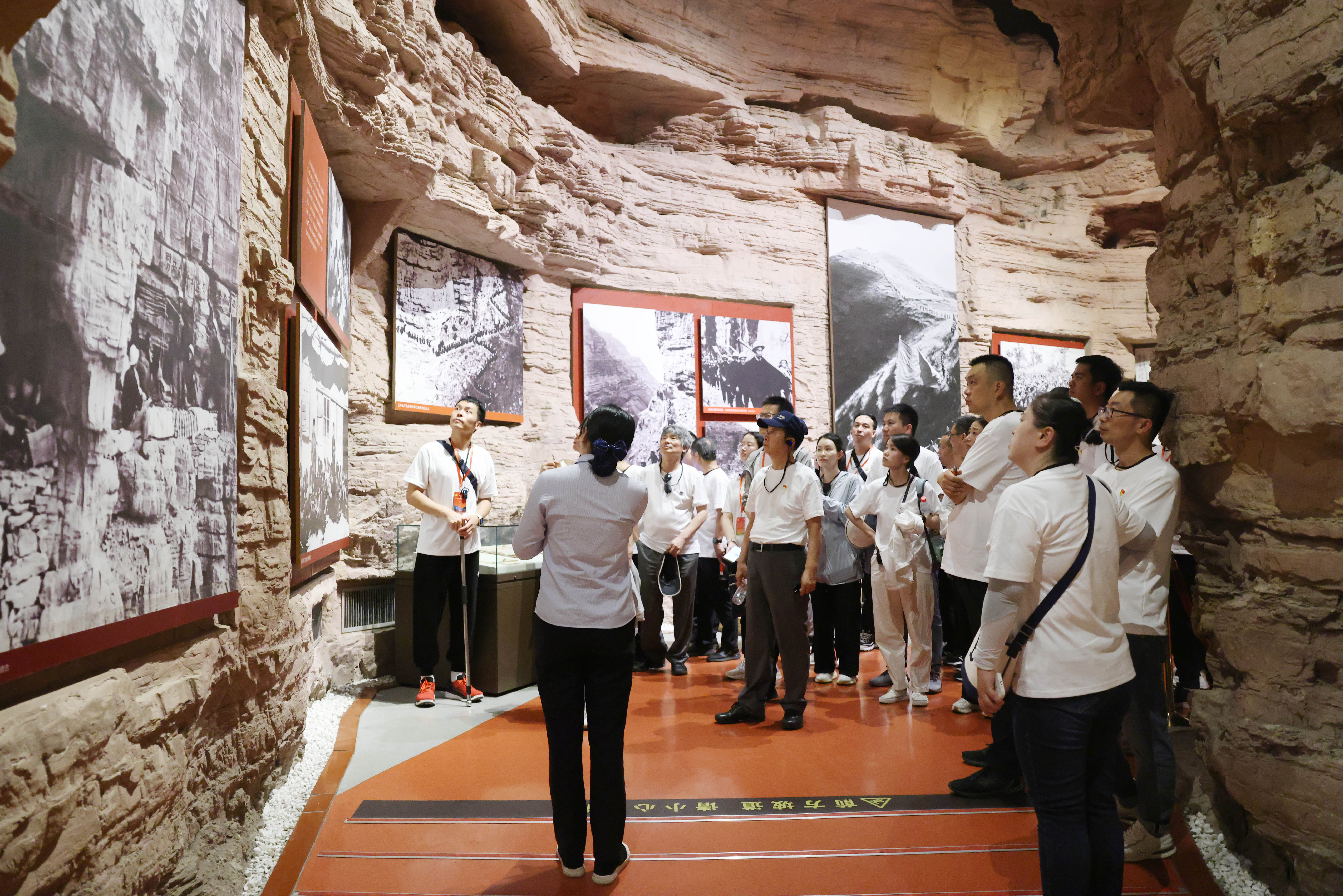 现场教学过程中,学员们先后参观了红旗渠纪念馆、红旗渠分水闸,穿过象征红旗渠精神的“红飘带”,走过蜿蜒曲折的“水长城”,最终来到红旗渠总干渠的咽喉工程——青年洞,沉浸式体验当年建渠时的场景。红旗渠纪念馆修建于红旗渠总干渠枢纽工程的分水闸处,跟随讲解员的介绍,培训学员在纪念馆集中参观了“千年旱魔、创造奇迹、太行丰碑、实现梦想、精神永恒”等内容,深入了解了林县人民为了改变干旱缺水的困境,在社会主义建设时期苦战近十年改造山河的伟大壮举。一幅幅泛黄的照片、一件件陈旧的工具、一个个感人的故事,展现了林州人民建造人工天河时不畏艰险、顽强拼搏、撼天动地的恢弘场景。在红旗渠总干渠的咽喉工程——青年洞,大家实地感受了林县人民在极其艰难的施工条件下,克服重重困难,在悬崖峭壁之上人工开凿天渠的伟大壮举,大家被这一伟大的工程所震撼,无不惊叹林县人民的艰辛与智慧。全体党员高举右拳,面对鲜红的党旗,庄严宣誓,重温了入党誓词,激励自己牢记党的宗旨,永葆先进本色。