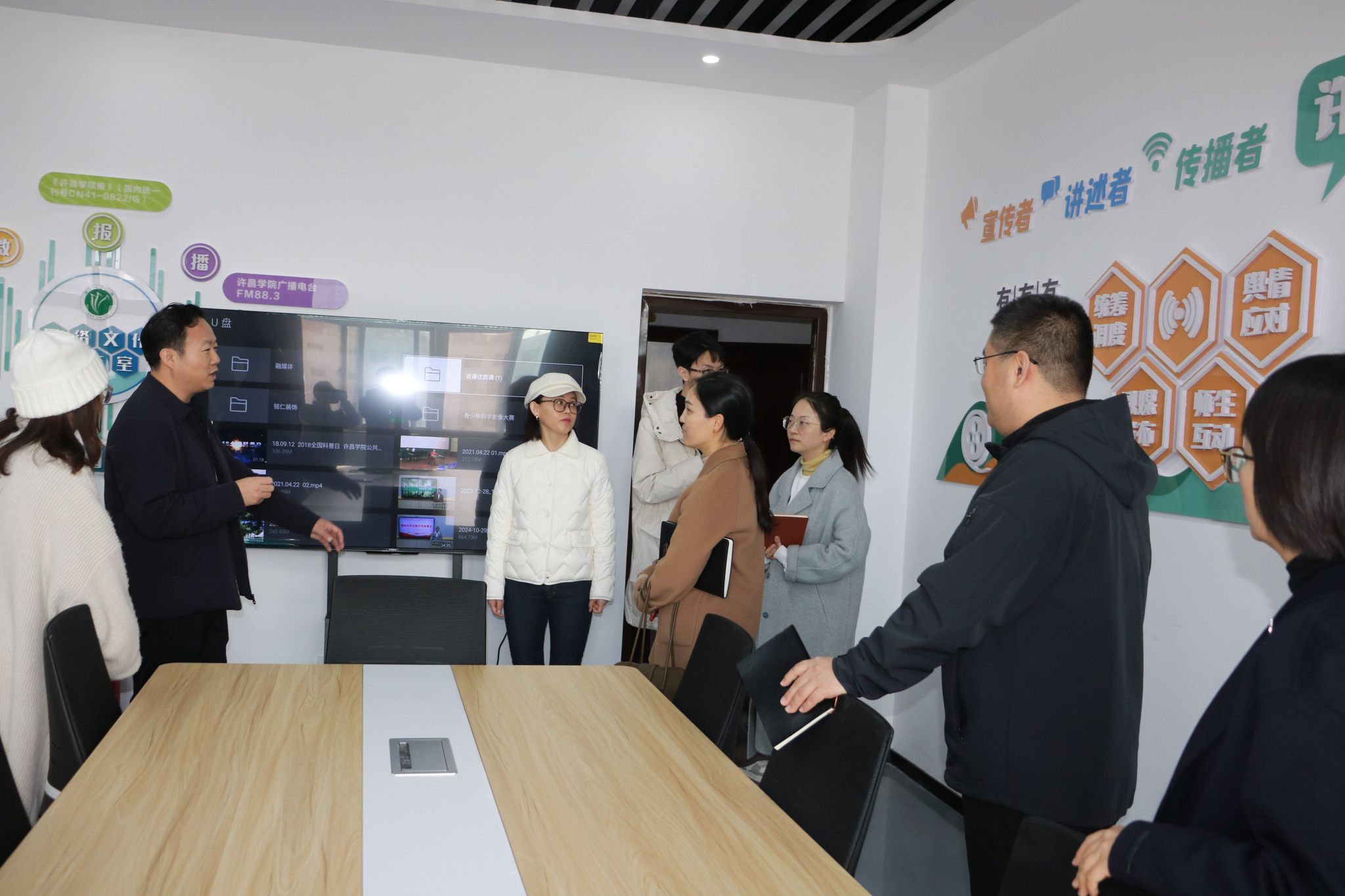 陈瑞芳介绍了我校宣传工作的基本情况、近年来取得的发展和目前面临的主要挑战,并表示,希望双方以此次交流学习为契机,进一步深化交流、加强合作,建立更加紧密的合作交流机制。通过此次交流学习,进一步明确了我校在新媒体建设方面存在的差距和融媒体中心建设方面的不足。下一步,我校将进一步提高认识,坚持固基本与补短板、找准工作着力点,建立健全相关制度,加强业务培训力度,推动构建大宣传格局,深化沟通交流,相互促进,共同提高。
