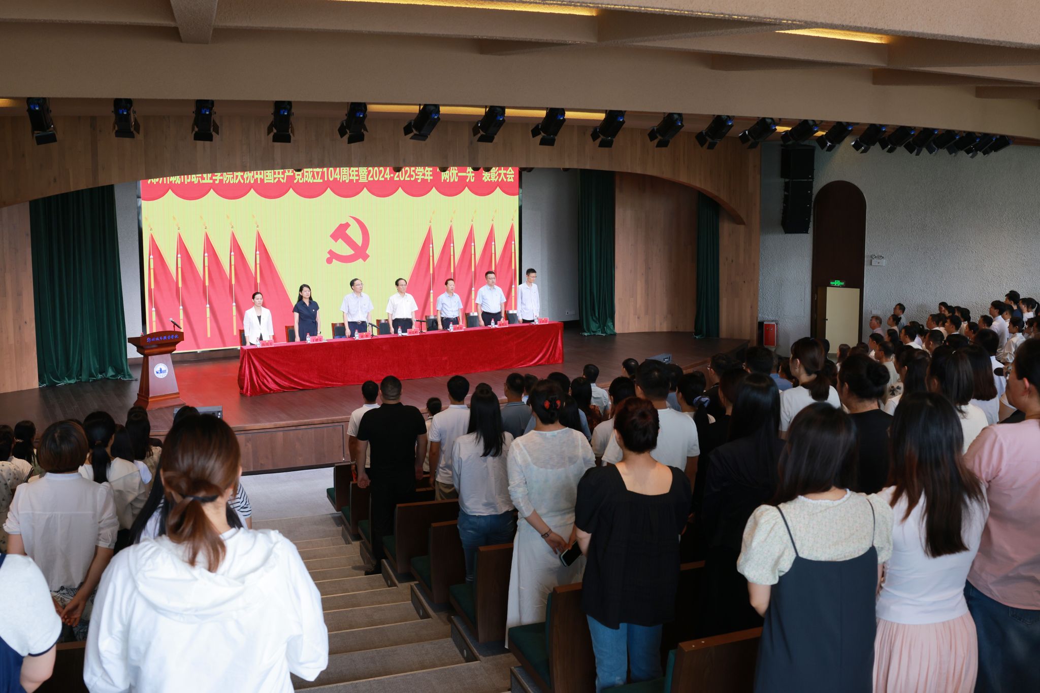 为庆祝中国共产党成立104周年,表彰先进,激励广大党员和各级党组织踔厉奋发,7月1日,郑州城市职业学院召开庆祝中国共产党成立104周年暨“两优一先”表彰大会。学校党委书记刘昆岭,校长徐洪波,党建指导员、党委副书记刘程,党委委员、副校长谢照红、丁雅荣,党委委员、组织部长王山青,党委委员、宣传部长陈瑞芳以及全体共产党员参加会议。会议由党建指导员、党委副书记刘程主持。
