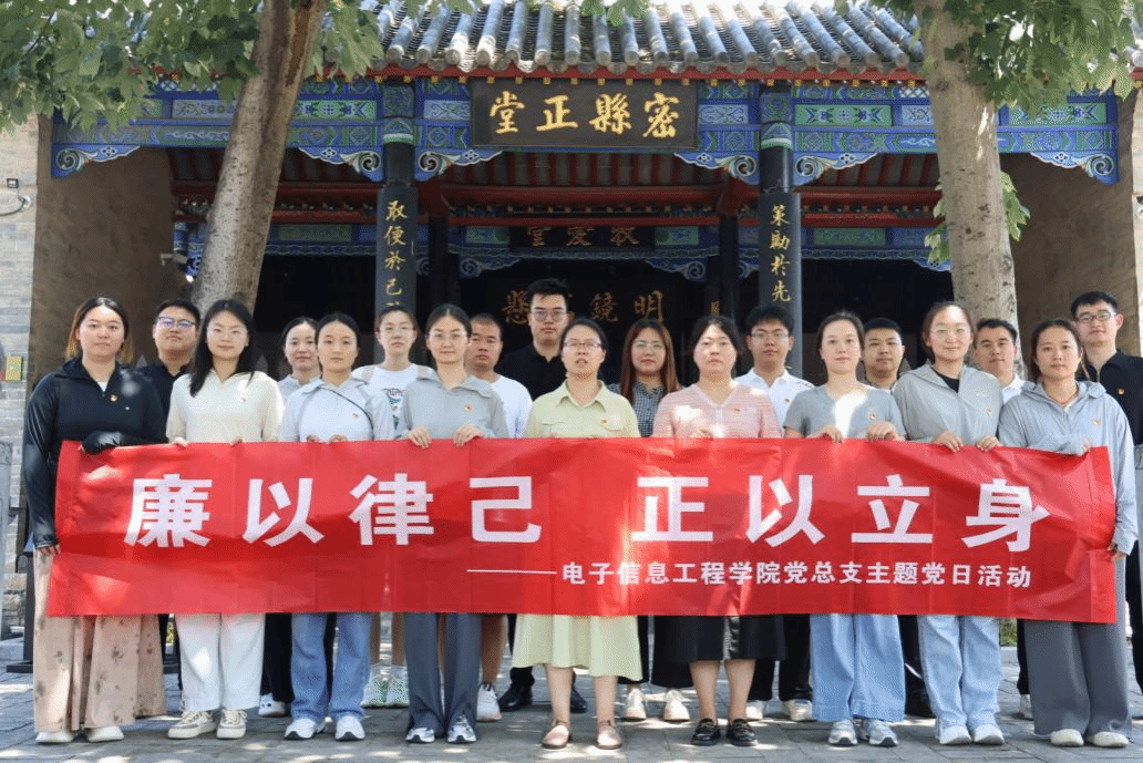 为深入贯彻中央八项规定精神学习教育工作部署,扎实推进党支部学习教育,推动全面从严治党向纵深发展,增强党员纪律意识与党性修养,7月4日上午电子信息工程学院党总支组织党员前往郑州市廉政教育基地——密县县衙,开展“廉以律己,正以修身”主题党日活动,以沉浸式红色教育与廉政文化学习融合的形式,引导党员在历史回望中汲取奋进力量。