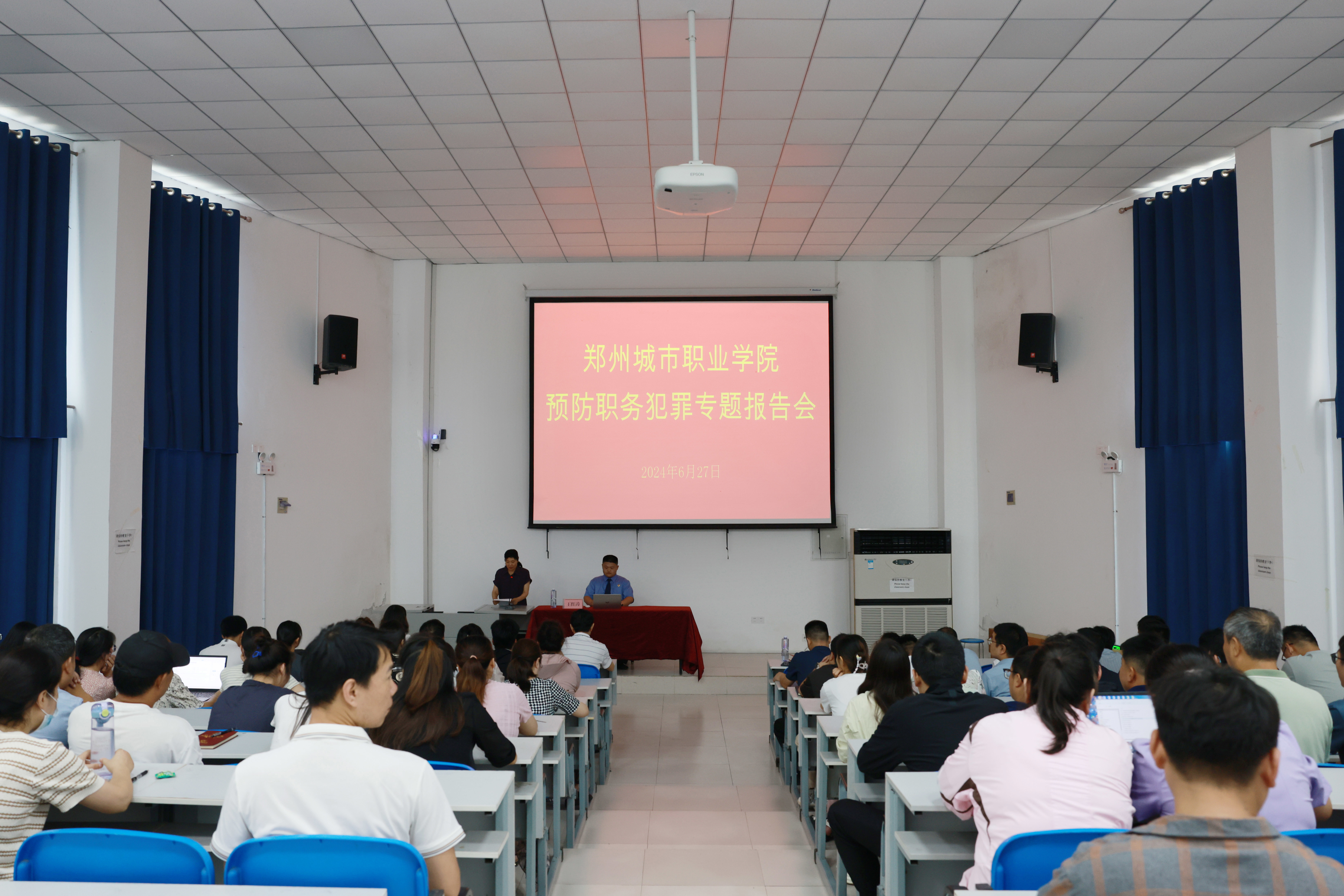 为纵深推进正风肃纪反腐,推动党纪学习教育走深走实,加强干部职工对职务犯罪相关知识的学习和认识,提高防腐拒变能力,6月27日,郑州城市职业学院特邀请新密市检察院王红涛检察官来我校作预防职务犯罪的专题报告。党委书记刘昆岭,党委副书记、纪委书记武子文,副处级以上管理干部、各党(总)支部纪检委员及重点岗位人员参会,武子文主持会议。