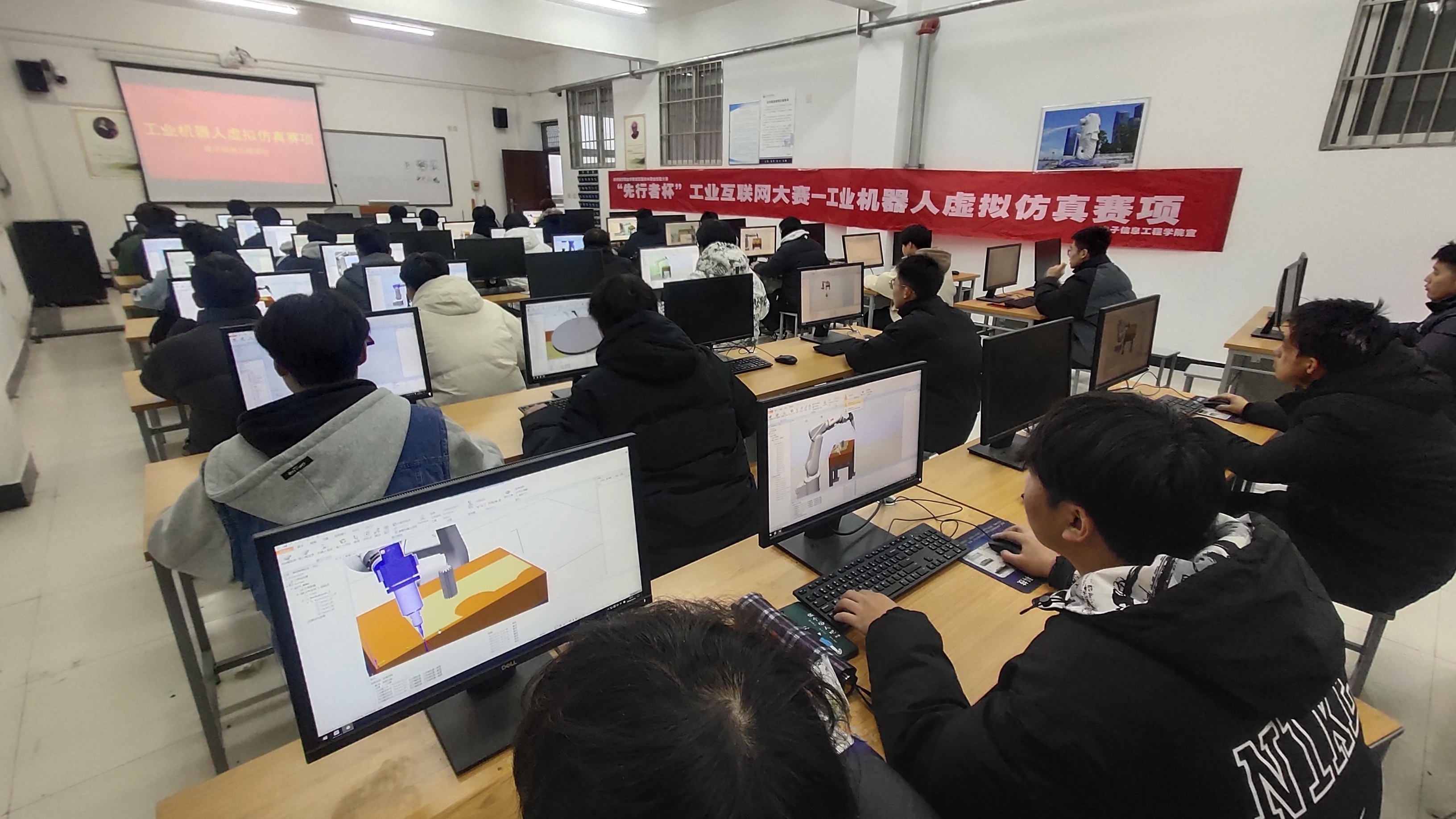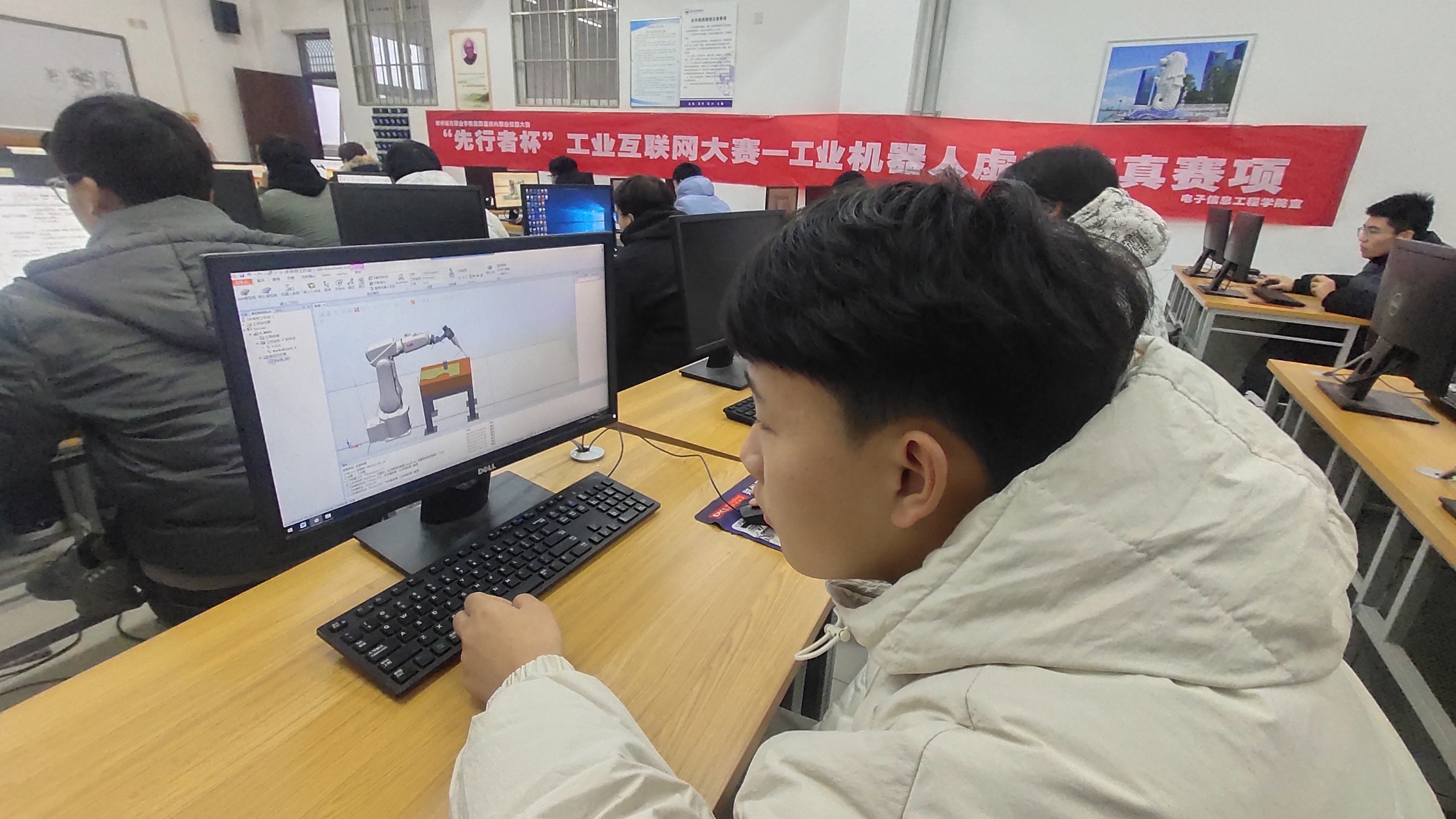 近日,郑州城市职业学院电子信息工程学院举行了第四届校内职业技能大赛“先行者杯”工业互联网大赛--工业机器人虚拟仿真赛项,该比赛旨在展示同学们的专业技能和实际操作能力,检验教学成果,以赛促学、以赛促教,通过组织开展工业机器人技能大赛,强化学生基本理论、基本知识,规范基本操作技能,加强学生动手能力的培养和工程实践的训练,增强实践能力,激发广大学生学习的积极性,增加学生学习专业课的兴趣,提高学生的综合素质。