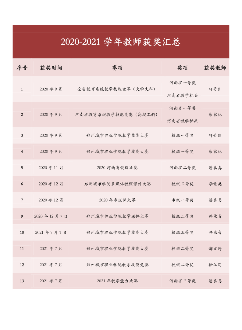 2020-2021学年教师获奖汇总