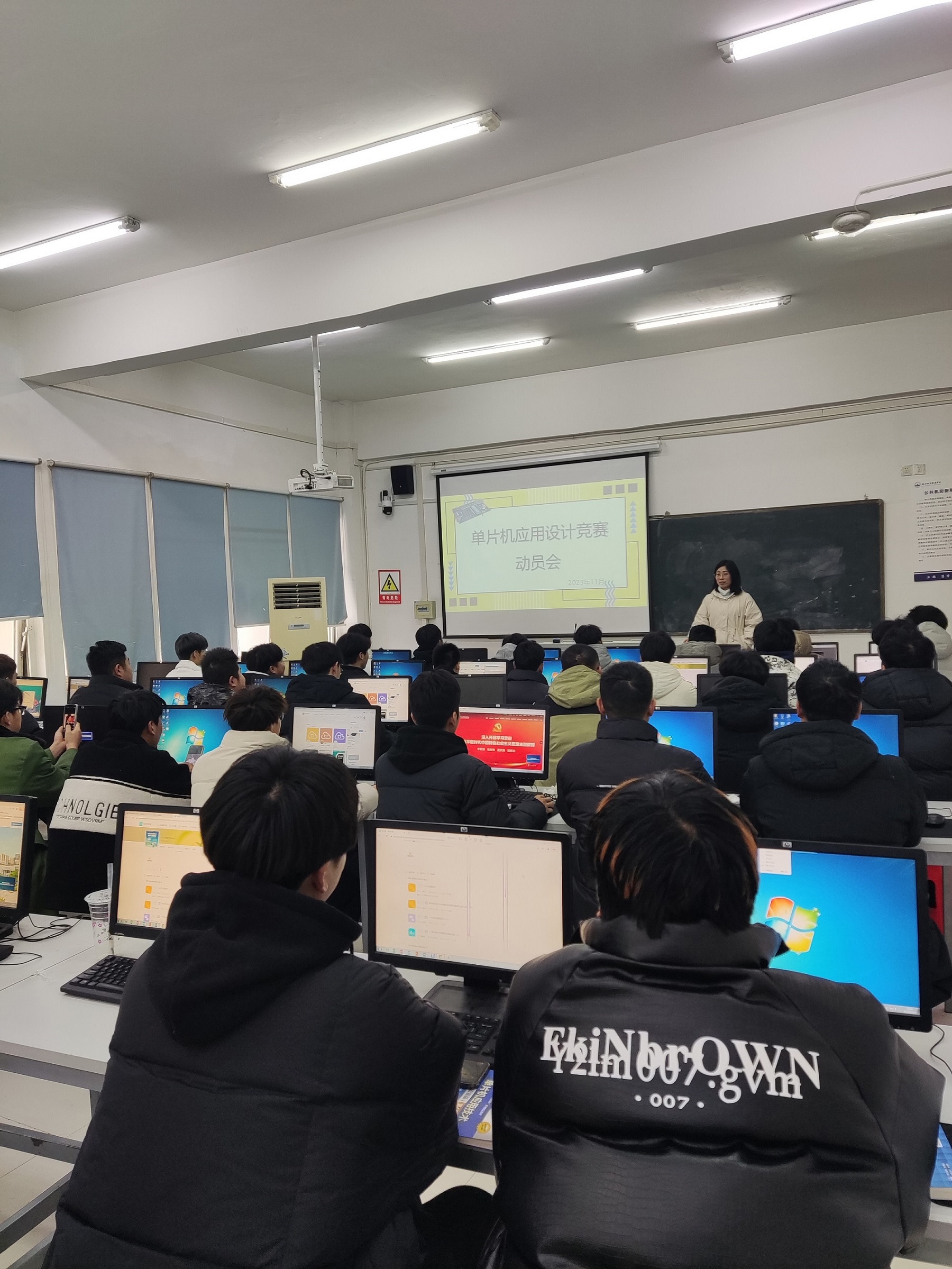 为激发莘莘学子对科技创新竞赛的兴趣,提高动手实践的能力与水平,培育科技创新精神,为此郑州城市职业学院电子信息工程学院联合先行者工作室在11月20日开展了单片机应用设计竞赛动员会。此次比赛针对电子信息工程学院自动化系大二在校生开设,80%以上的学生积极报名并参加了本次比赛。