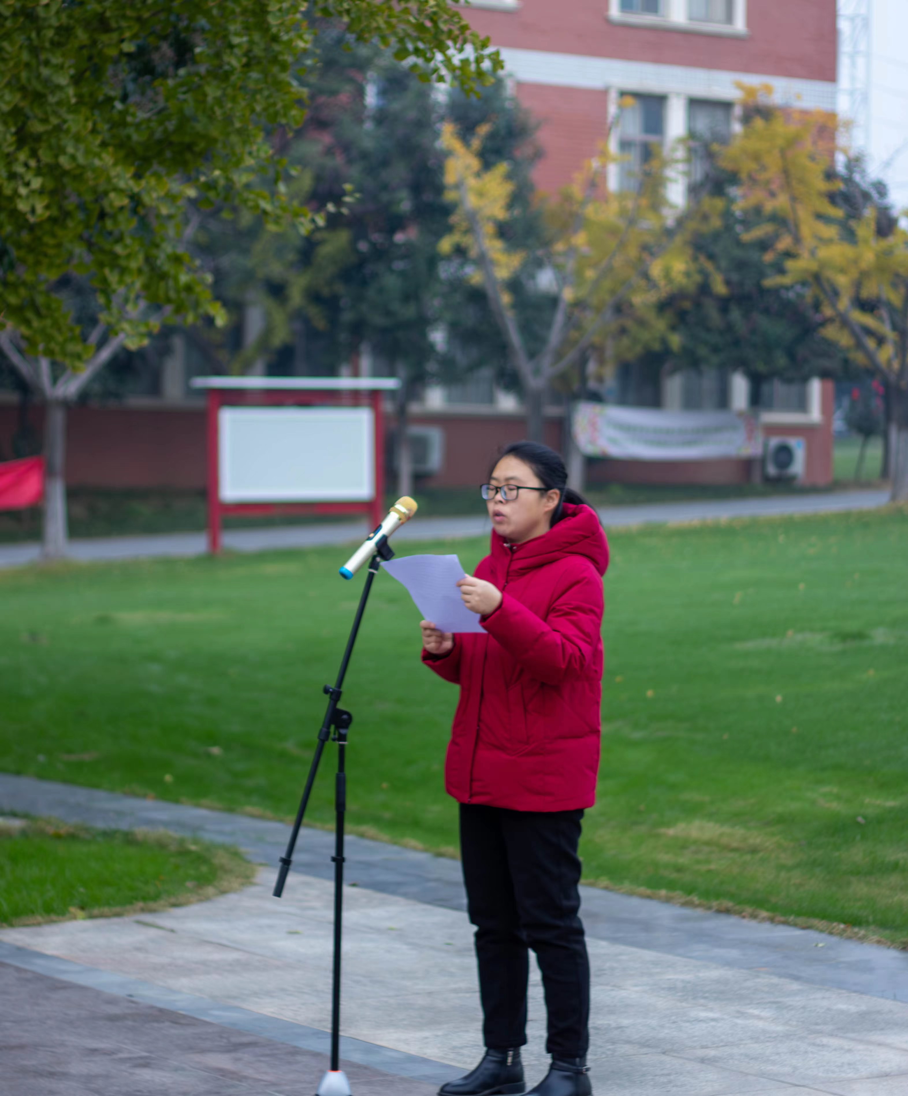 在庄严肃穆的氛围中,国旗护卫队迈着铿锵有力的步伐,护送五星国旗至升旗台。晨曦的阳光洒在大地,全体师生庄严肃立,怀着对国旗对祖国崇高的敬意,一起守候,一起见证五星红旗冉冉升起,注视着迎风飘扬的那一抹中国红。