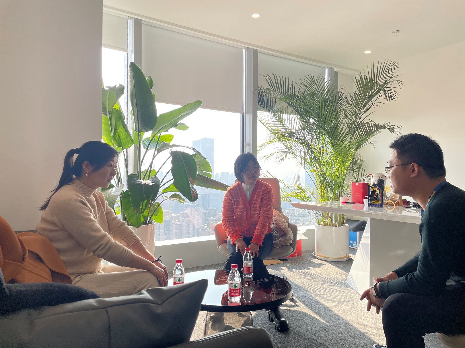本次走访受到杭州盛珩控股集团有限公司新媒体与直播事业部经理张凯辉的热情接待。在座谈交流会上,张凯辉经理介绍了公司的发展历程、优势领域、行业发展趋势等情况,并对人才培养及需求上指出应以短视频平台运营和达人孵化为主要内容,课程设置上更加强调 “编”“策”“剪”的实际应用能力,通过实训及时检验课程效果,最好能遴选优秀学员提前进入企业实习孵化平台。电子信息工程学院轩丹阳院长介绍了学校的专业设置、人才培养、产教融合和实习就业等方面的情况。双方关于人才培养、学生实习实训、人才招聘等方面进一步达成了共识。