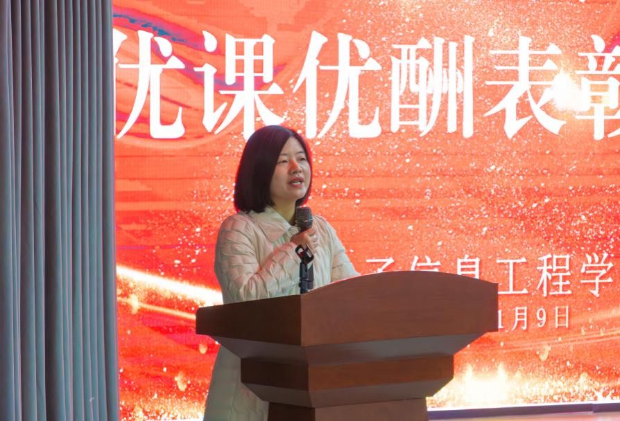 大会在庄重的氛围中拉开帷幕,电子信息工程学院院长轩丹阳致开幕词。她首先对全体教师在过去一学期中的辛勤付出表示衷心的感谢,并强调了“优课优酬”制度对于提升教学质量、激发教师积极性的重要意义。轩院长表示,学院将继续坚持这一制度,让更多的优秀教师脱颖而出,为学生的成长和学校的发展贡献力量。
