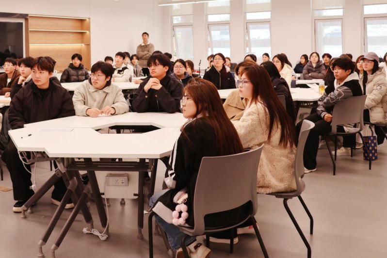 交流中,张总为大家介绍了AI海外剧的行业发展前景,这个新兴领域发展快、人才需求大。他也跟同学们分享了企业用人的核心标准:比起单一的专业技能,责任心、团队协作、主动解决问题的职业素养,才是职场里最核心的竞争力。没有大道理,全是实用的职场经验,让同学们清楚明白了学习和就业的紧密联系。