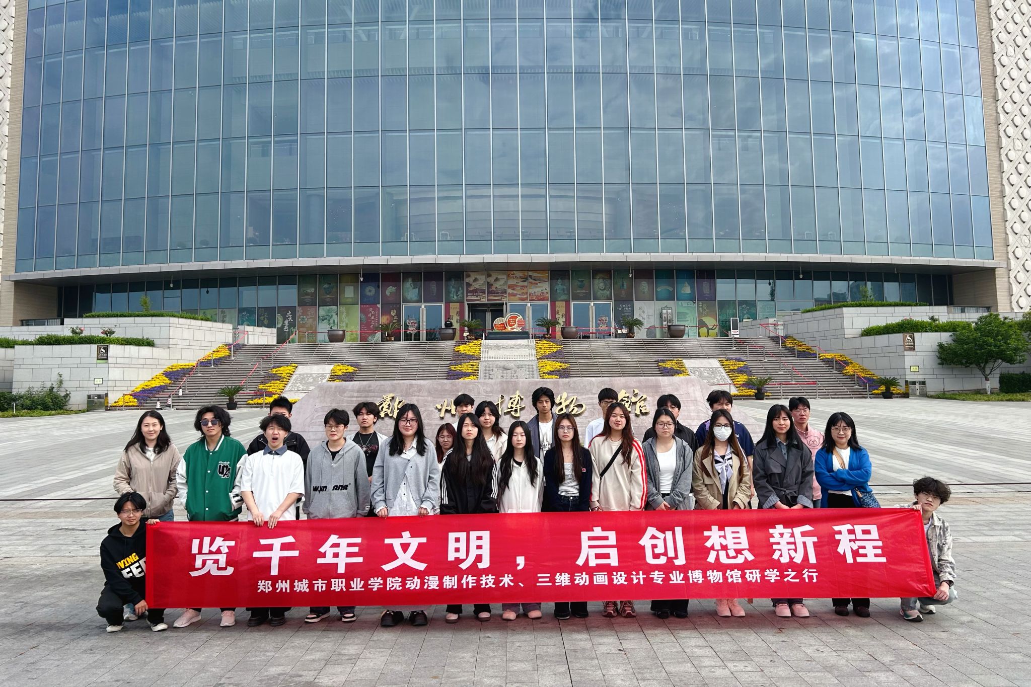近日,郑州城市职业学院25级数字媒体技术(三维动画设计)专业1班、动漫制作技术专业4班的24名同学,在白晨洁、王乐两位老师的带领下,奔赴郑州博物馆,开启了一场以览千年文明,启创想新程为主题的趣味研学之旅,为专业学习充电续航!