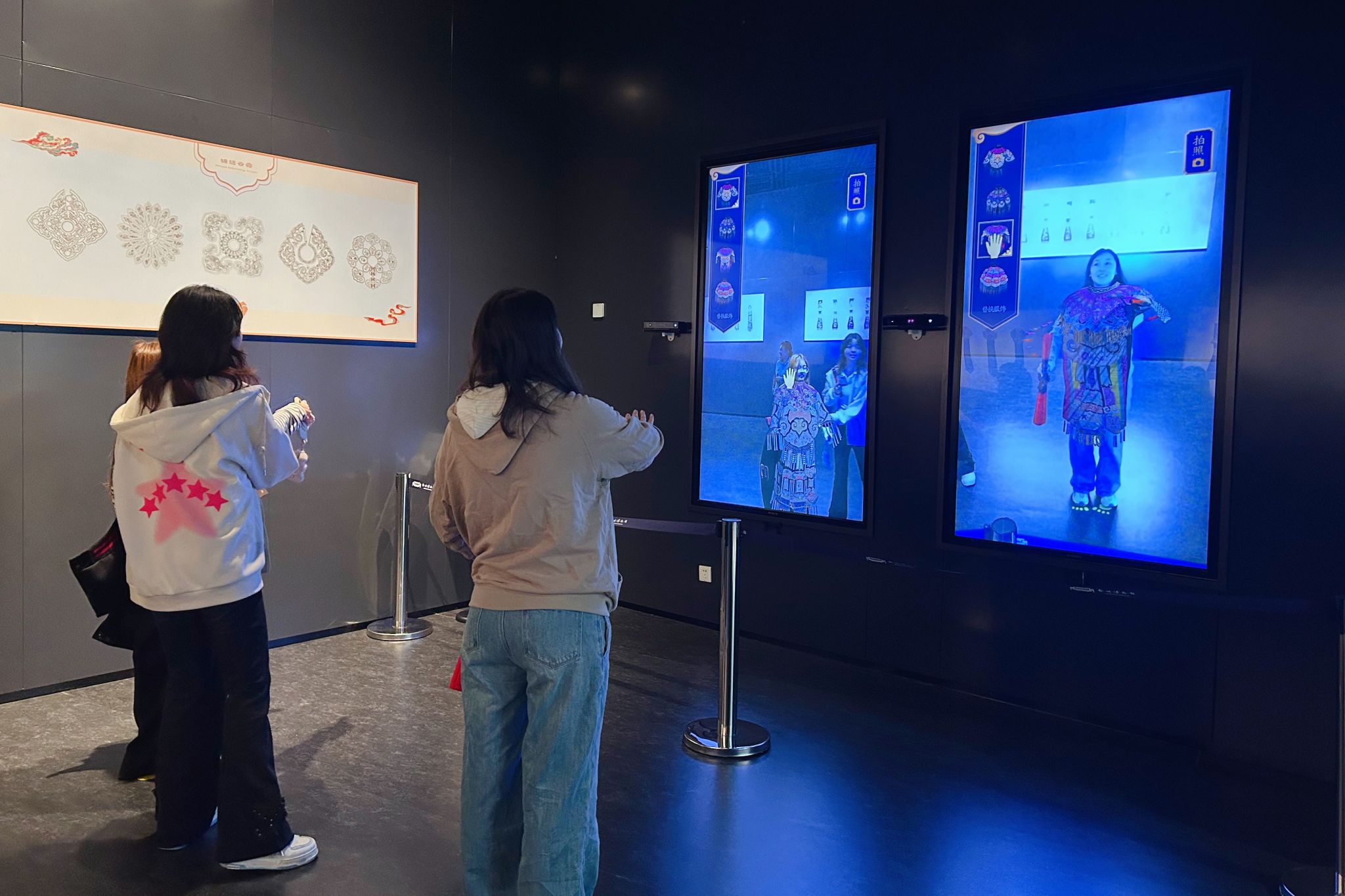 当然少不了超有趣的互动体验环节!各个展馆门口都设有互动屏幕,同学们无需携带任何设备,只需站在屏幕前,就能轻松开启互动,瞬间打破时空限制,仿佛能亲手触摸文物、走进历史场景,真切感受到科技与艺术融合的魔力。同学们一边参观、一边拍照记录、一边互相交流,不自觉就把看到的文化元素和自己的三维动画设计、动漫制作技术专业联系起来,好多创作灵感瞬间迸发,这波研学真的太值了!