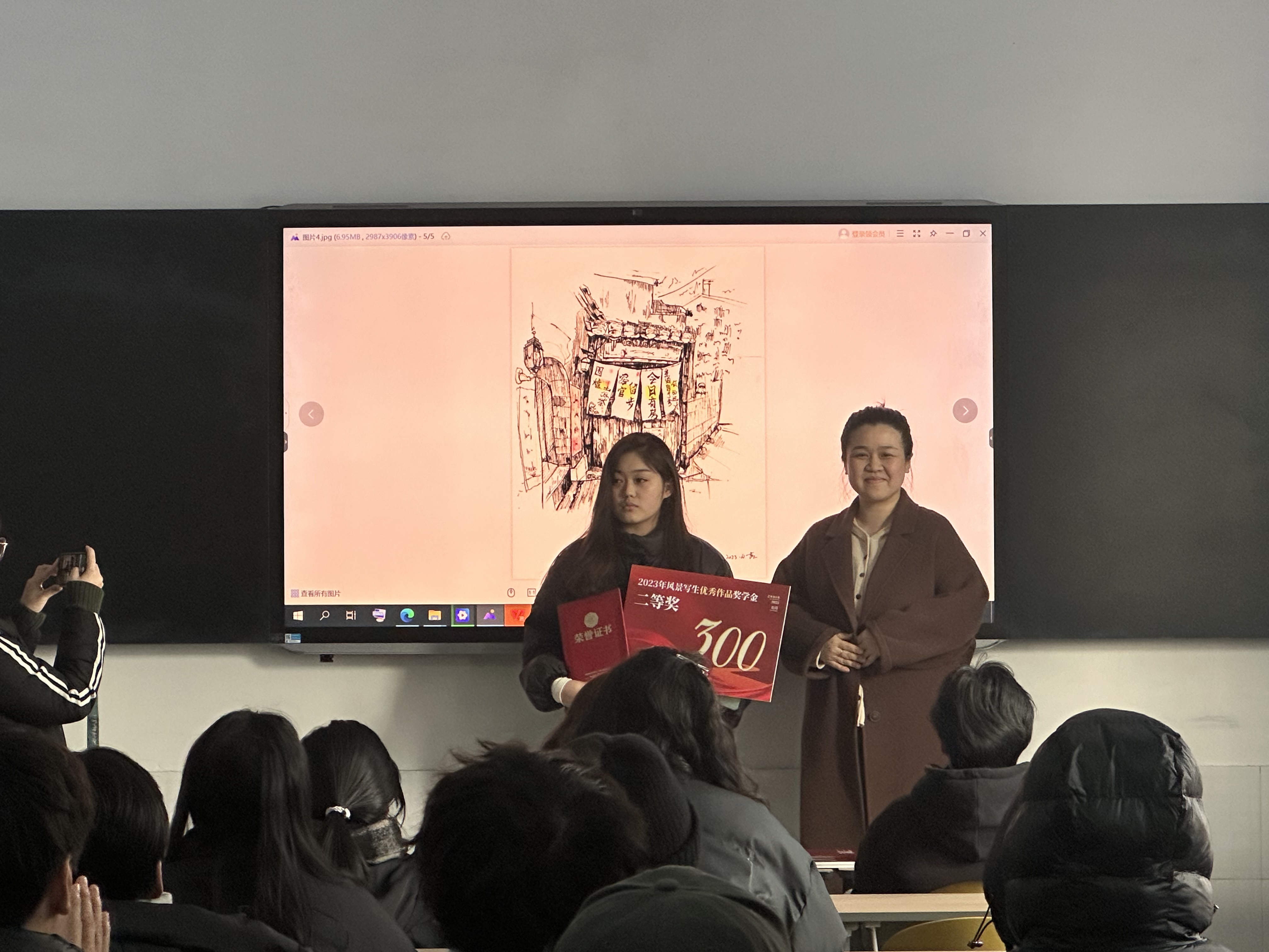 本次风景写生优秀作品颁奖典礼于12月28日在3330教室举办,2022级写生学生和2023级部分学生,艺术设计系主任徐晶和风景写生课程指导老师们共同见证了艺术的盛会。