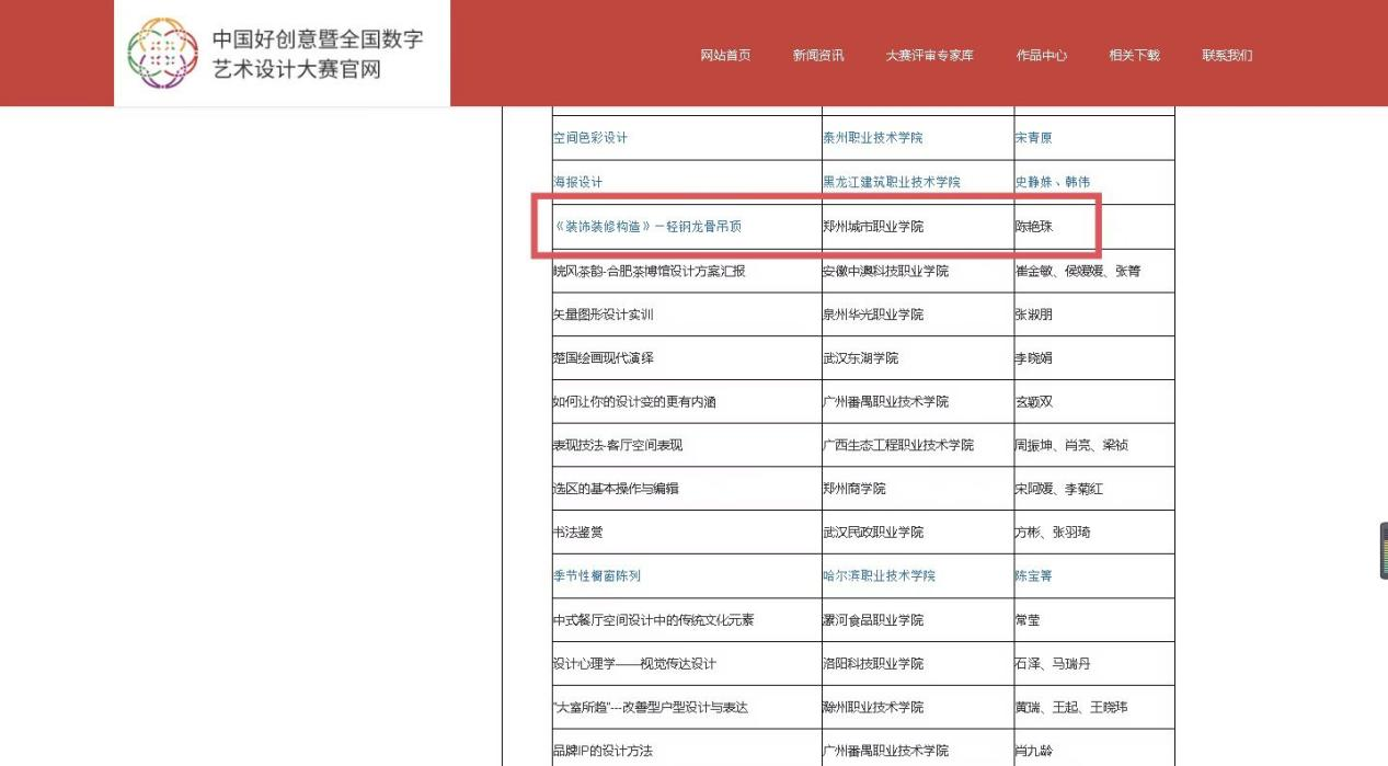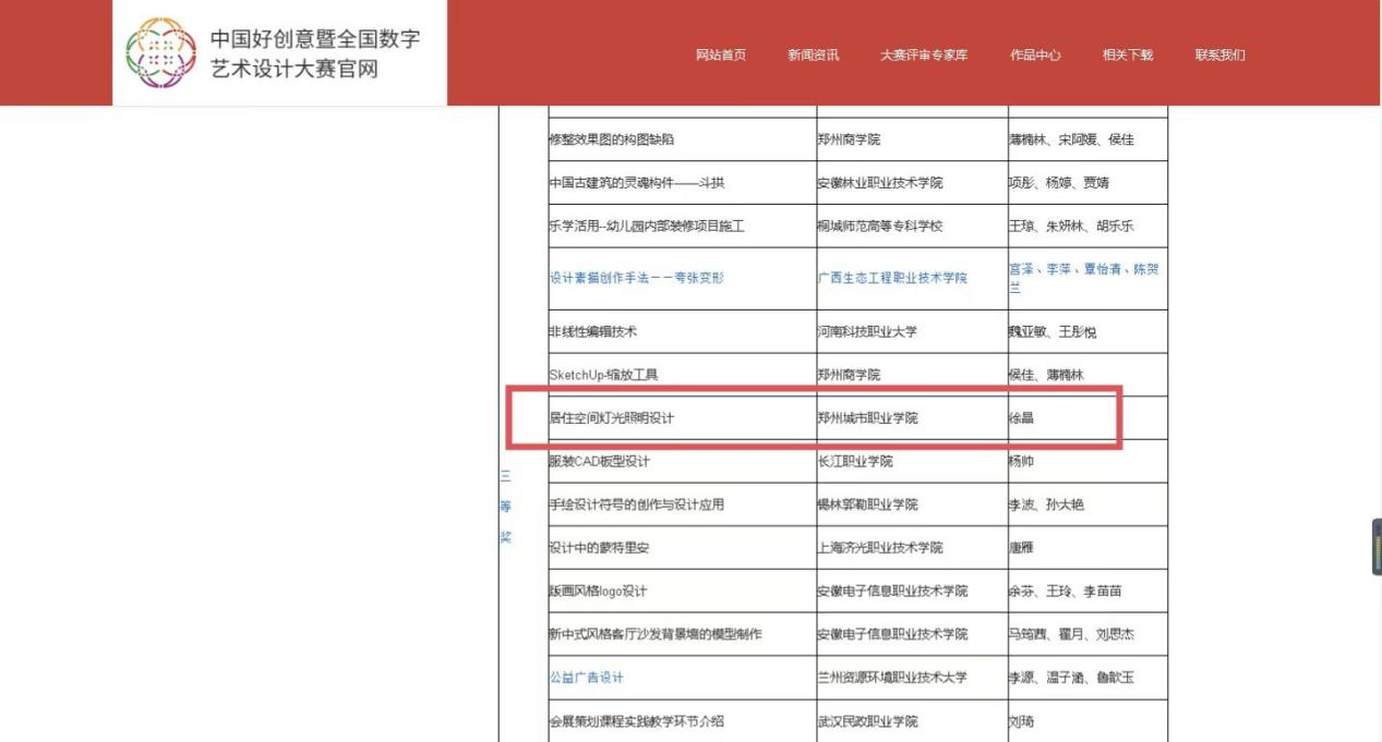 6月10日,第五届“全国数字创意教学技能大赛”落下帷幕。我院教师获得二等奖1项、三等奖2项的好成绩,其中,谷晓红老师的作品《< 室内照明设计>--让光去到他该去的地方》获得二等奖;徐晶老师的作品《居住空间灯光照明设计》和陈艳珠老师的作品《< 装饰装修构造>—轻钢龙骨吊顶》分别获得三等奖。