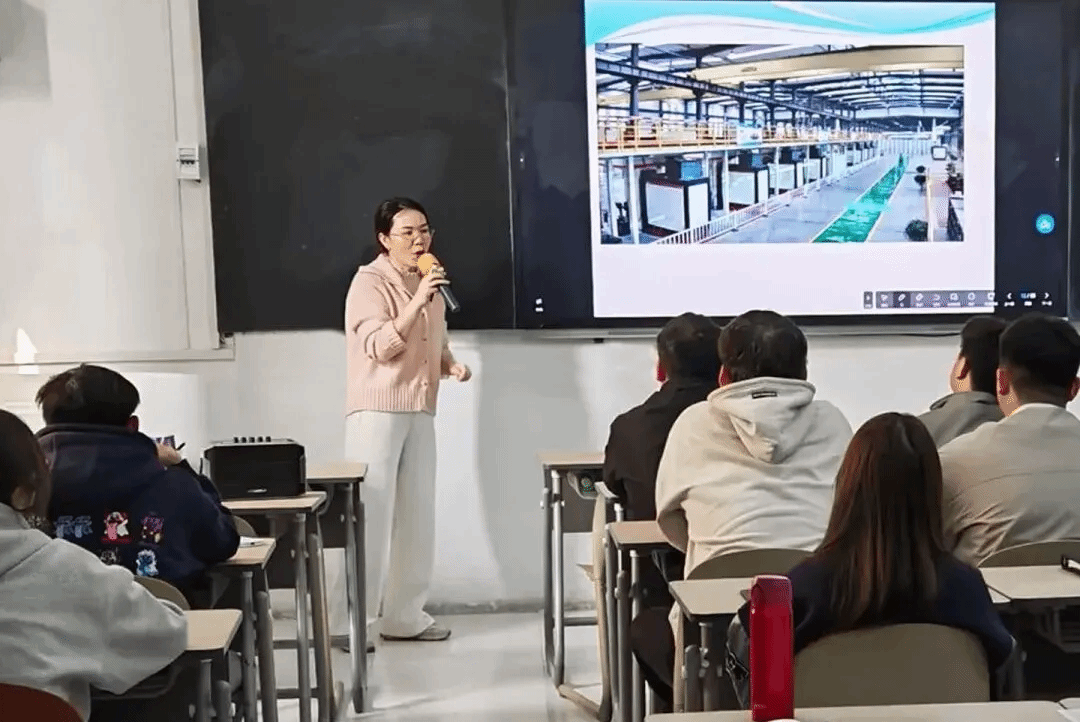 讲座中,许大燕专家通过实景影像带领同学们 “沉浸式” 走进中钢洛耐绿色智能生产车间。从原料预处理的爱立许高速混炼机,到加压成型的 2500T 液压机,再到精准控温的 186 米长硅砖隧道窑,每台核心设备的功能特性、操作规范与技术参数都被细致拆解,让同学们直观感受现代化绿色制造的技术魅力。