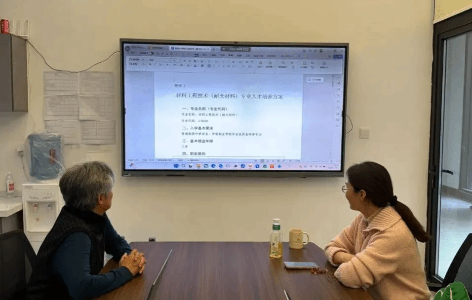 讲座结束后,许大燕专家在材料工程系专业教师陪同下,实地考察了学校耐火材料实训室的设备配置、教学场景搭建与学生实践开展情况。在随后的座谈会上,她结合行业发展趋势与企业人才需求,为材料工程技术专业人才培养方案提出建设性意见:专业课程应强化颗粒级配设计、烧成制度优化等核心工艺的实践教学,同时融入绿色耐火材料、智能制造等行业前沿内容,助力学生培养跨学科思维与持续学习能力。