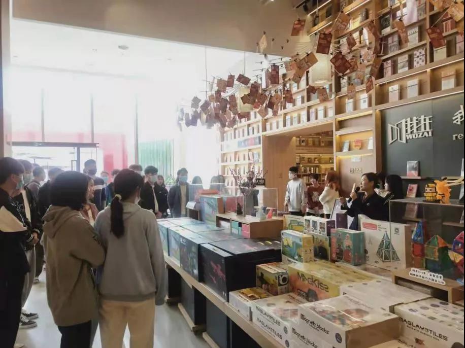 考察的第一站是新密光年房地产公司的售楼部、光年书店、样板间、王檀美术展。学生通过参观光年生活广场,学习了最前沿的商业空间布局设计理念、精品全景厨房的小公寓布局设计方法;了解了新材料的构造及施工工艺等,收获颇丰。