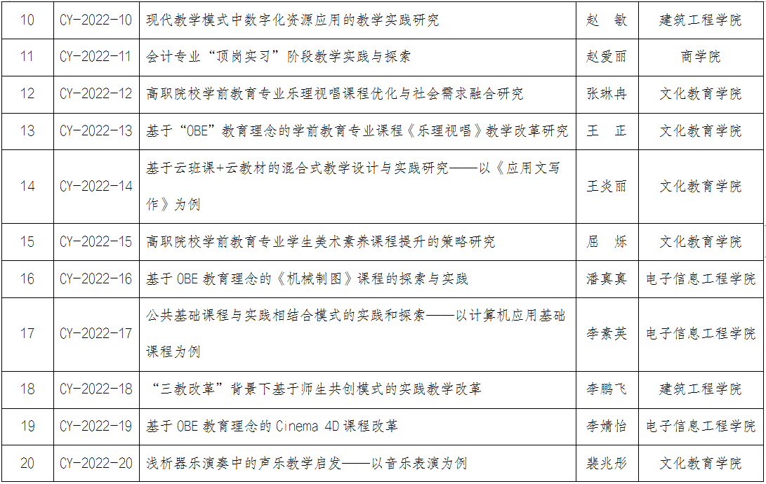 郑州城市职业学院2022年度校级项目立项一览表