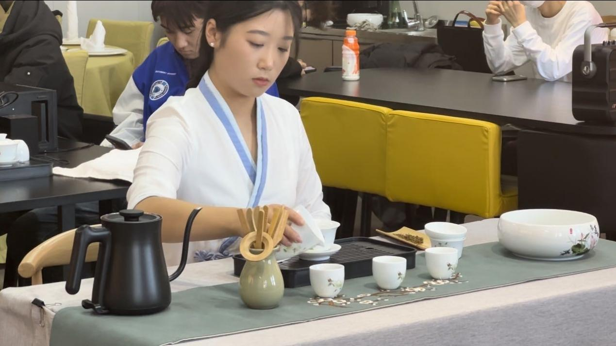 茶,是中国人的国饮。茶艺,是中华文化之国粹。清甜的寿眉、鲜香的铁观音、香醇的安化黑茶……不同的茶叶和清泉碰撞出不一样的火花。为进一步增强职业教育适应性,提高人才培养质量,充分发挥“以赛促教、以赛促学、以赛促建、以赛促改”的作用,12月7日,由商学院商务管理系举办的郑州城市职业学院第四届校内技能竞赛暨创新茶艺品饮竞技大赛在1#405新荣记专属教室顺利举行。