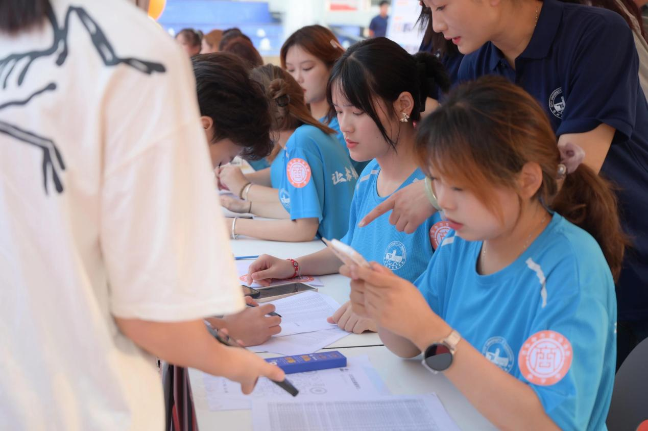 清晨七点,迎新志愿者已准备就位。志愿者们相互协作,尽职尽责,用饱满的热情迎接一批又一批新生和家长的到来,力求让他们初到这里便感受到商学院的温暖与友爱。从场地布置到学生信息登记注册,从引路指导到行李搬运,迎新现场处处可以看到他们的身影。前广场迎新点处,是他们贴心的指导与解惑;领路途中,是他们热情的交流与介绍;学院公寓楼里,是他们周到的服务与帮助。同时,专业老师积极承担专业引导、答疑工作,辅导员们贴心为新生准备开学的小礼物,他们用行动诠释出对新生到来的喜悦。