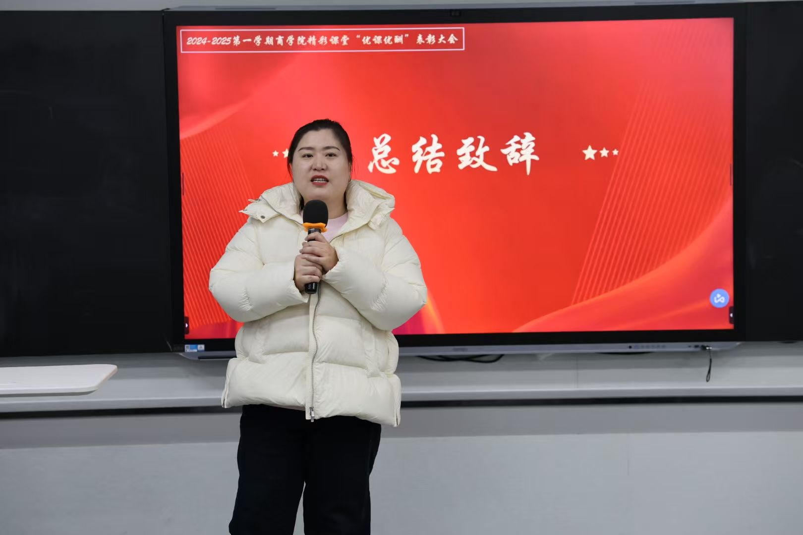 本次商学院精彩课堂优课优酬表彰大会圆满结束,希望全体老师在未来的工作中,继续发扬优良传统,勇于创新实践,为学院乃至学校的教育事业贡献更多的智慧和力量!