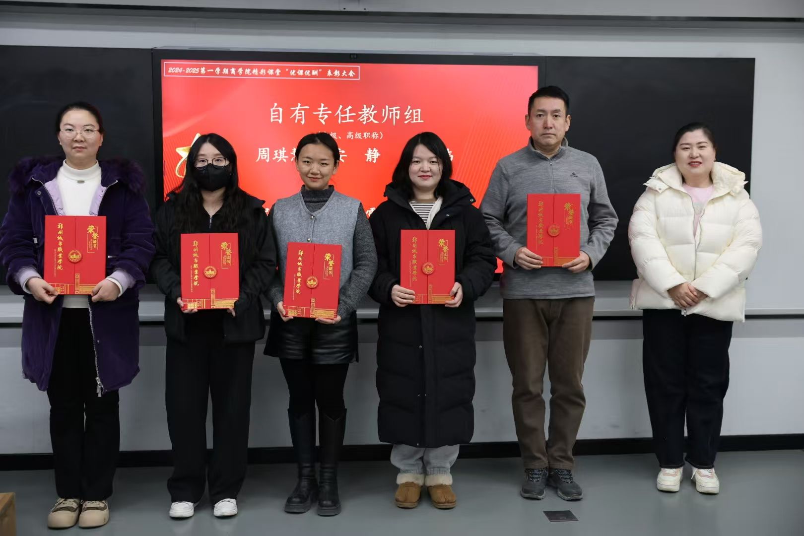 随后由各位领导为双肩挑教师组、自有专任教师(初级、无职称组;中、高级职称组)获奖教师颁奖。