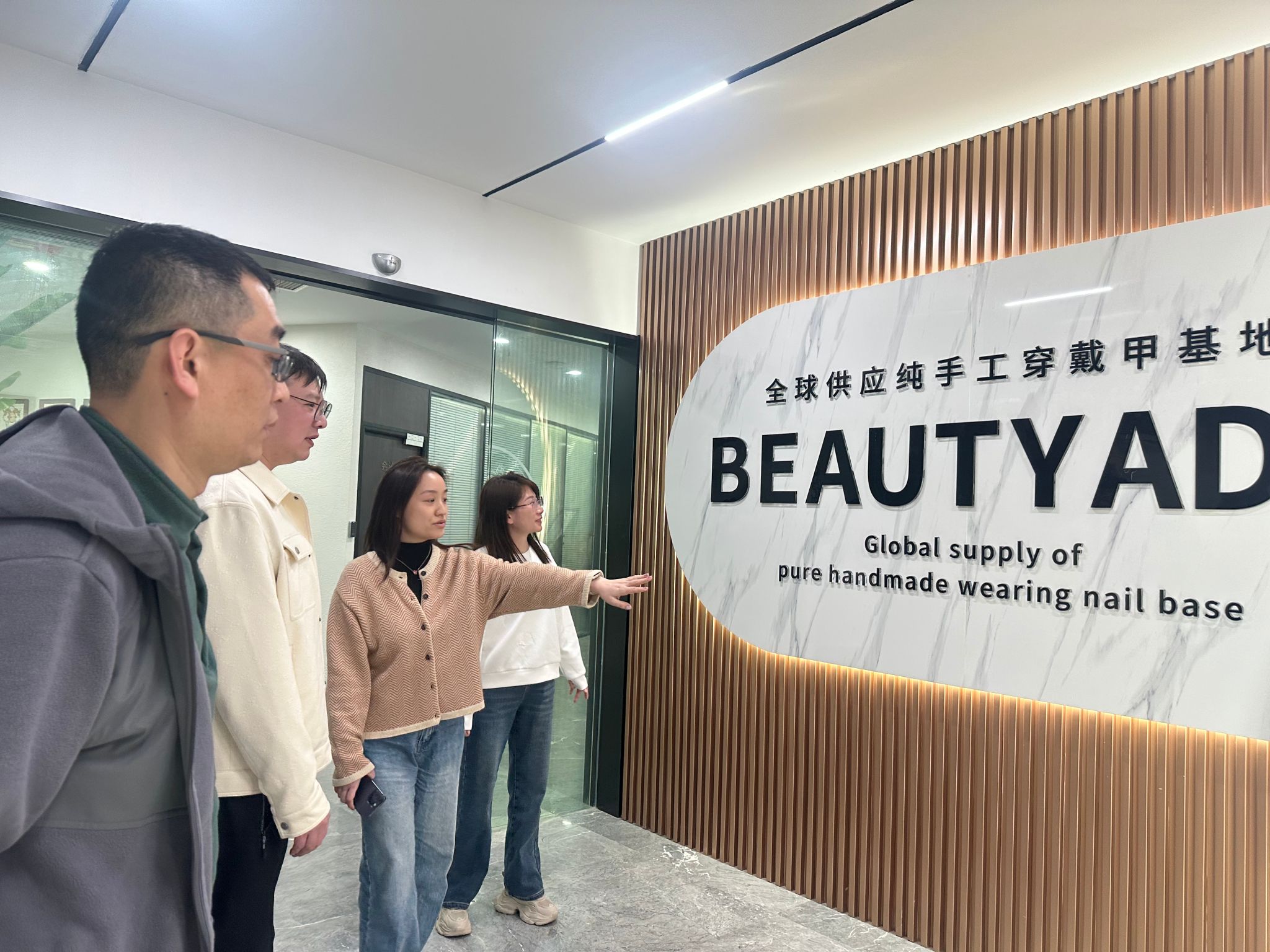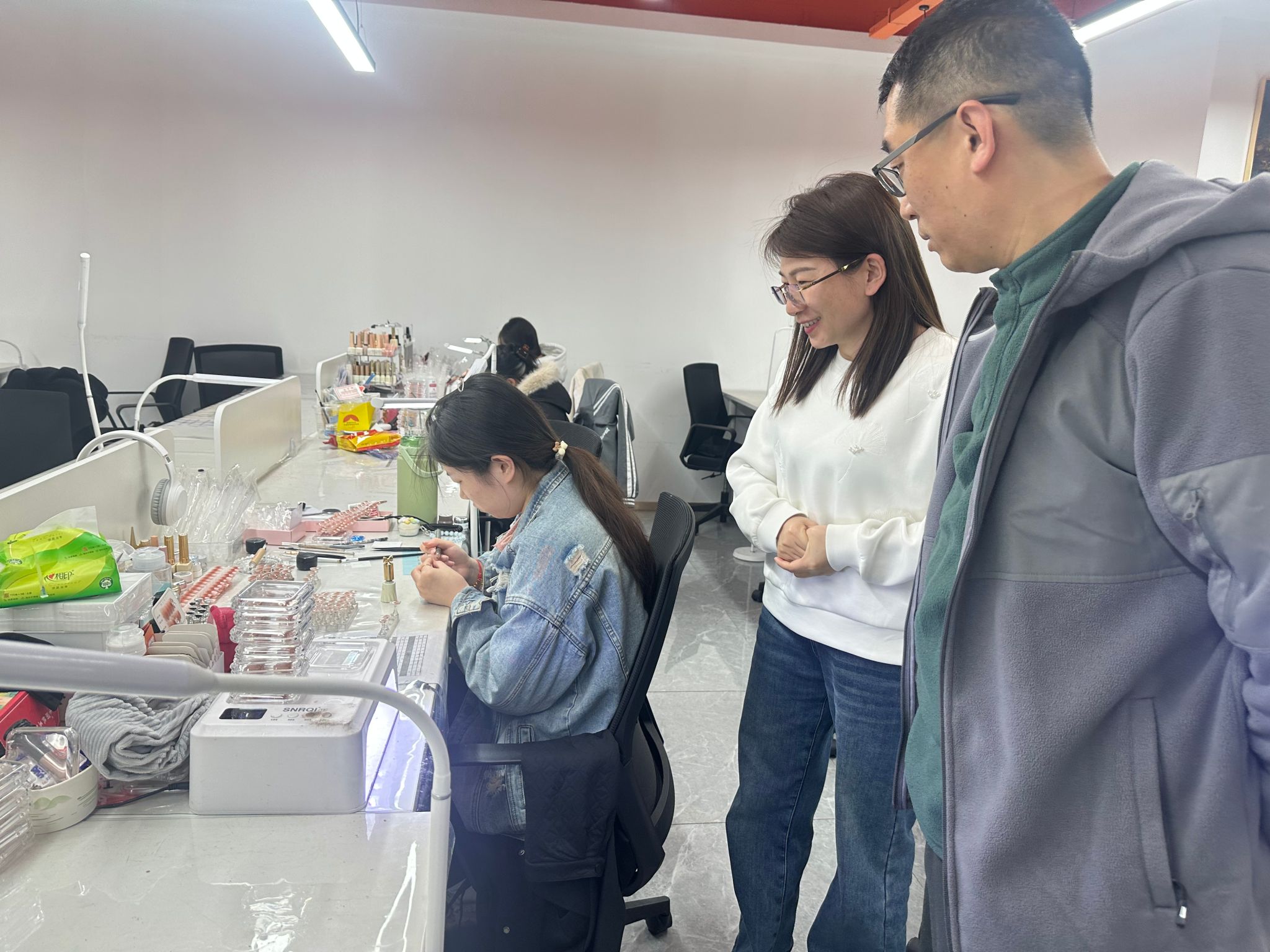 在穿戴甲直播生产基地,团队观摩了从产品设计到直播带货的完整流程。基地首创的“前播后厂”模式打破了传统产销界限,主播可实时联动生产线调整产品样式,极大提升了市场响应速度。数字营销系主任齐乐表示:“这种‘即需即产’模式对从业者的综合能力提出更高要求,不仅需要直播技能,还需具备供应链协调和数据分析能力。”