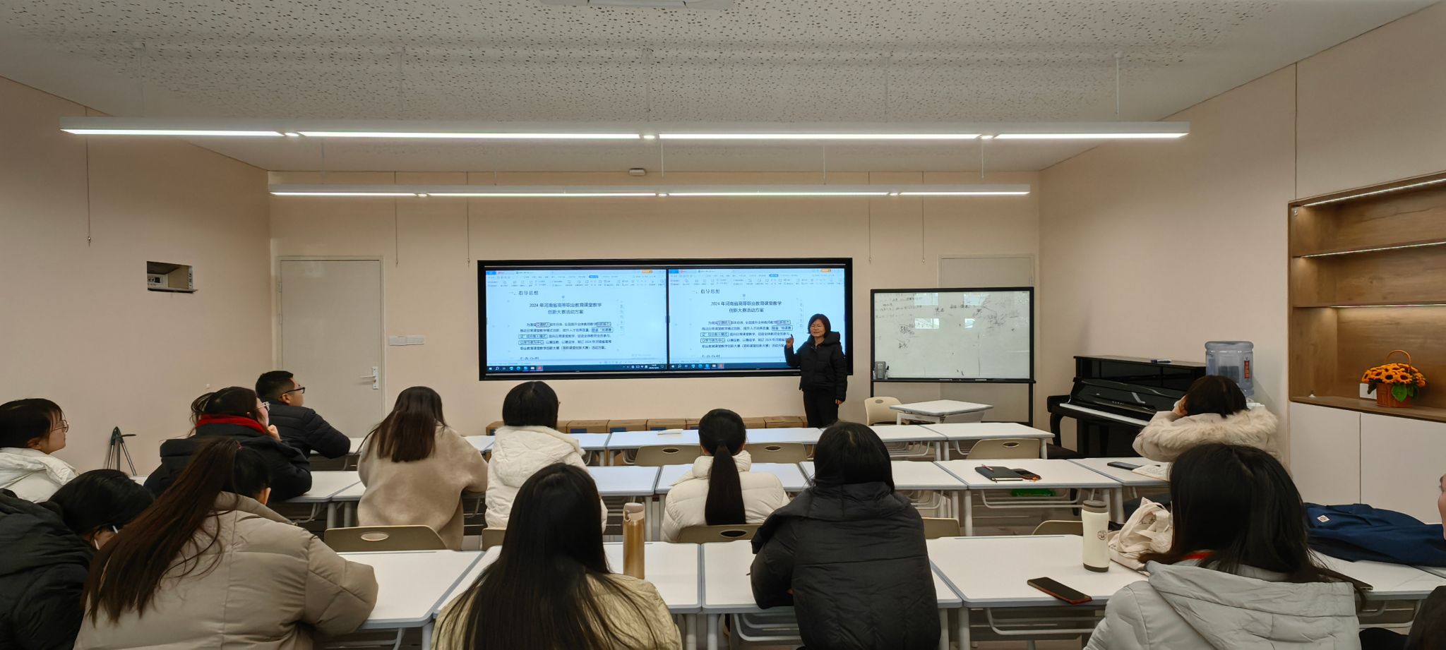 2024年12月25日下午,学前教育系教师郭春林在1104教室,为全体教师带来了一场关于河南省高等职业教育课堂教学创新大赛的经验分享会。分享会旨在帮助教师深入了解比赛要求,掌握参赛技巧,并提升教学设计和创新能力。