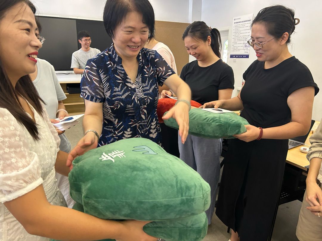随后,活动迎来了温馨动人的一幕。王洪院长亲自手捧寓意深厚的“靠山枕”和温馨卡片,逐一送到每位老师手中。这份特别的礼物,不仅是学校对老师们辛勤付出的肯定,更传递出“城院是坚强后盾”的温暖承诺,让老师们在感受到关爱的同时,心中也充满了归属感。