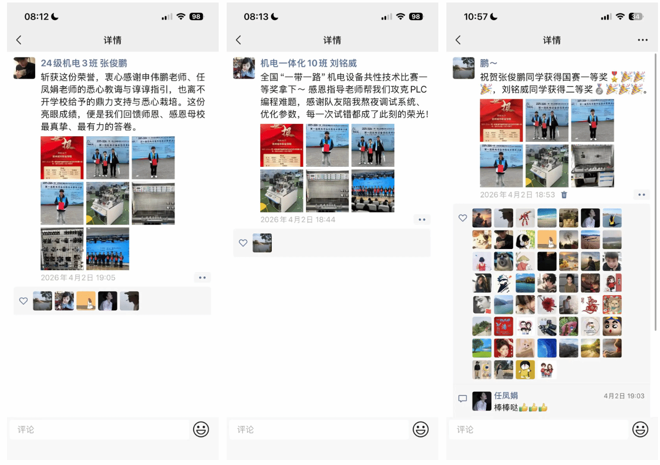 此次获奖是机电一体化专业学生竞赛的一次再创历史,更是我校人才培养质量的优秀成果。学校今后将继续坚持以学生为中心,注重实践教学,通过以赛促教、以赛促学、以赛促改、以赛促建的教育理念,不断提升学生专业技能和创新能力,助力更多学子成为技能型人才。
