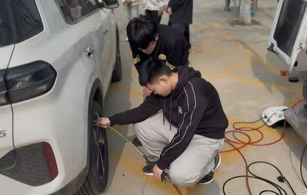 学生们纷纷表示:“平时在课堂上学的知识,今天真正用在真车上,手感更稳、思路更清,也更明白汽车养护的严谨与重要。”“能用自己的专业为老师服务,特别有成就感。这不仅是一次实践,更是一堂生动的职业素养课。”