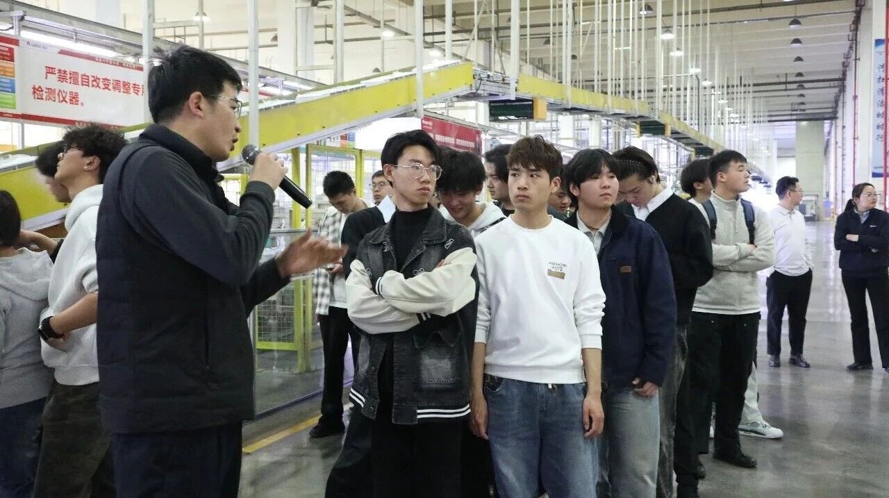 在企业技术人员的讲解下,同学们全程观摩空调生产全流程,认真记录、主动提问,直观了解现代化企业严谨的工艺标准、严格的质量管控与高效的生产模式。沉浸式的现场体验,让大家跳出课本,真切感受到制造业一线的蓬勃生机,对智能制造有了更具象的认知。