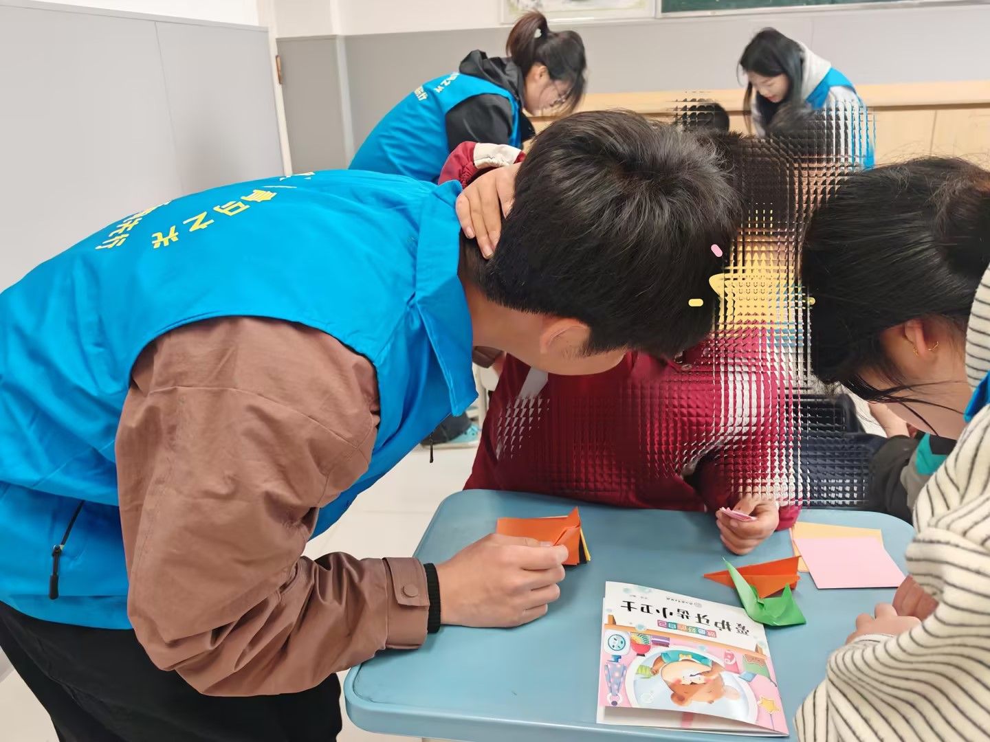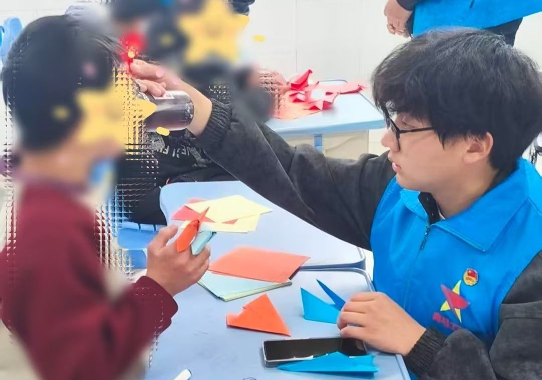 在折纸手工等互动环节,青马志愿者始终以耐心与温柔相伴,手把手指导孩子们创作纸飞机、千纸鹤等手工作品。他们细致讲解、耐心示范,用轻柔话语传递温情,以专注陪伴守护童真。孩子们在轻松愉悦的氛围中敞开心扉,完成作品后绽放出纯真灿烂的笑容,主动与志愿者亲密相拥、分享喜悦,现场处处洋溢着温暖与美好,温情融融。