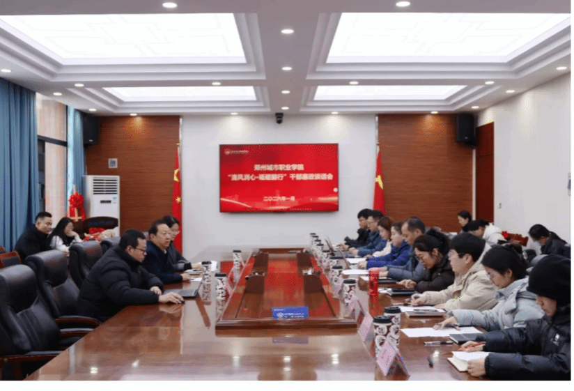 1月22日,一场题为“清风润心・砥砺前行”的廉政谈话会在郑州城市职业学院举行。不同于传统会议形式,现场更像是一次纪律课堂与初心对话的融合——案例剖析、清茶漫谈、笔尖承诺、清风礼赠,共同构成了这场既有力度又有温度的廉洁启航仪式。