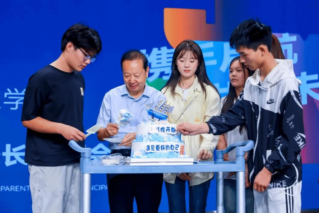 更令人动容的“家”的惊喜,出现在生日惊喜环节,学校为当天过生日的2025级新生准备了蛋糕,灯光聚焦处,工作人员推出生日蛋糕,在场家长与师生齐唱生日歌,一位家长动情地说:“学校连孩子的生日都记得,我们真的放心了。”一杯奶茶、一场生日会,看似微小的细节,却将“以父母之心育人”的理念化作“家”的温度,让家校之间的“家人”情谊愈发浓厚。