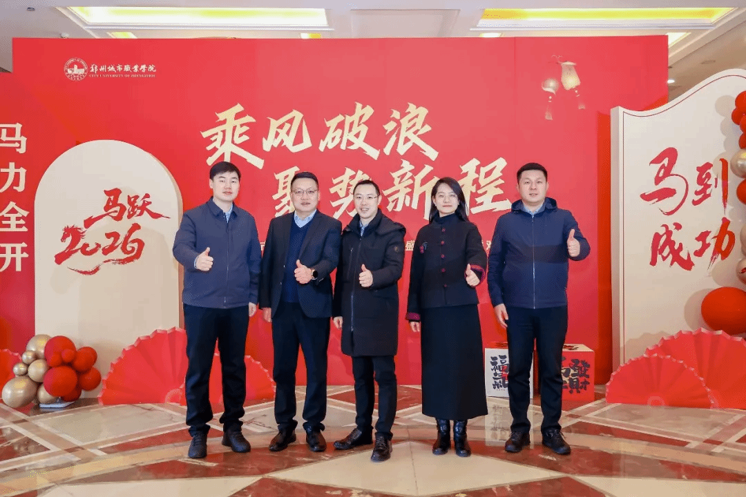 骏马迎春,共启新程。1月30日,郑州城市职业学院隆重举行"乘风破浪,聚势新程"2026年荣誉盛典暨新年联欢会。学校联席理事长、执行校长黄炜,党委副书记徐洪波,校长石本立,监事会主席丁雅荣、副校长谢照红,校长助理段龙飞、鲁晓迪与全体教职工欢聚一堂,挥别满载荣光的"十四五"收官之年,共赴充满希望的"十五五"开局新程。