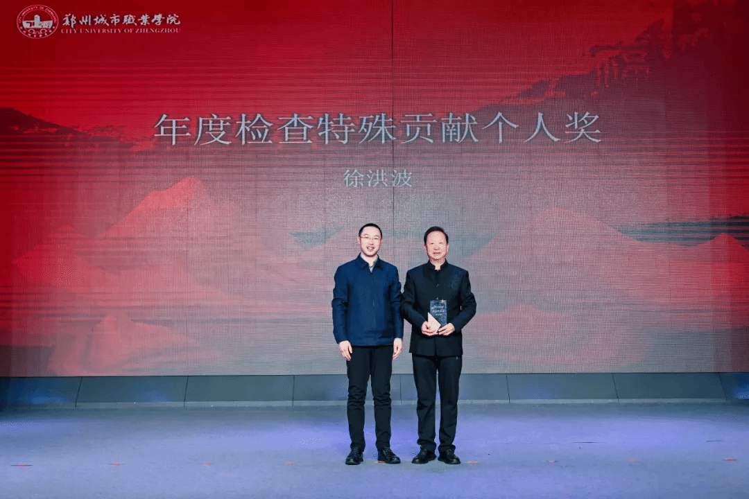徐洪波校长荣获年度检查特殊贡献个人奖;教务处等7个集体、张俊君等20人分获杰出及优秀贡献组织与个人奖。