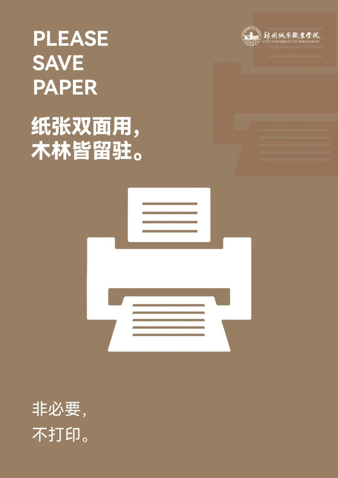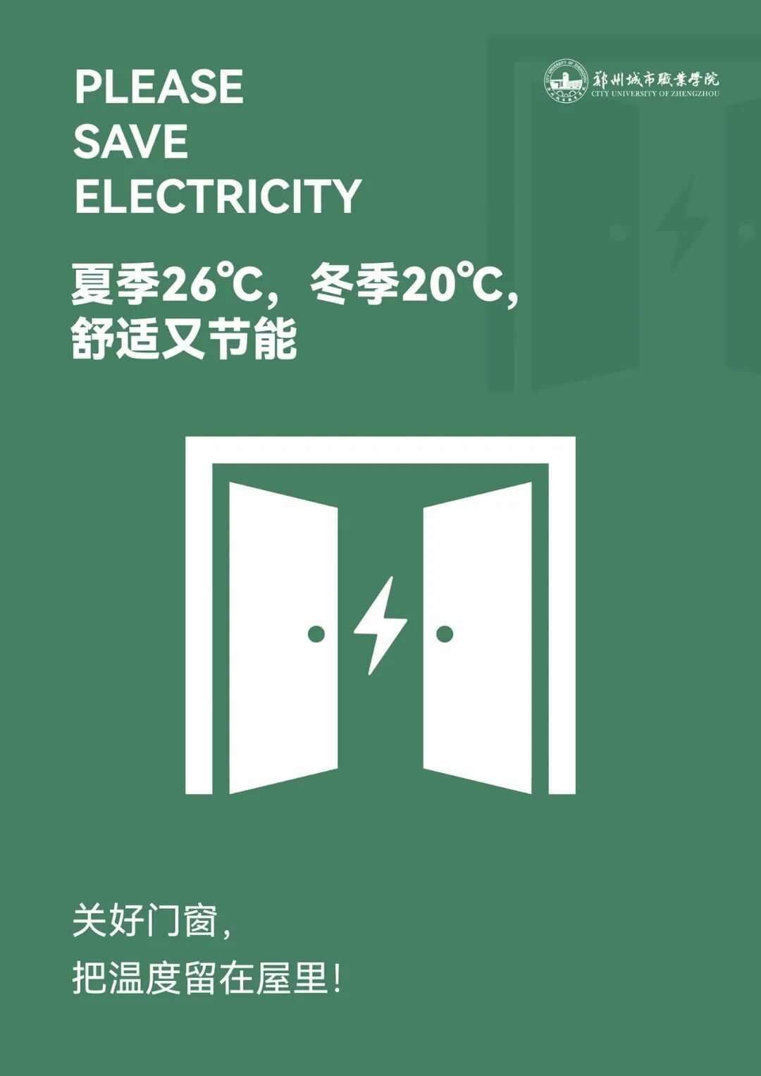 不同于传统校园节能宣传的生硬说教,郑州城市职业学院的这批绿色节能提示牌,以清新的视觉设计、温柔的话语表达,渗透在走廊、墙壁、教室、办公室等每一个师生日常场景中。
