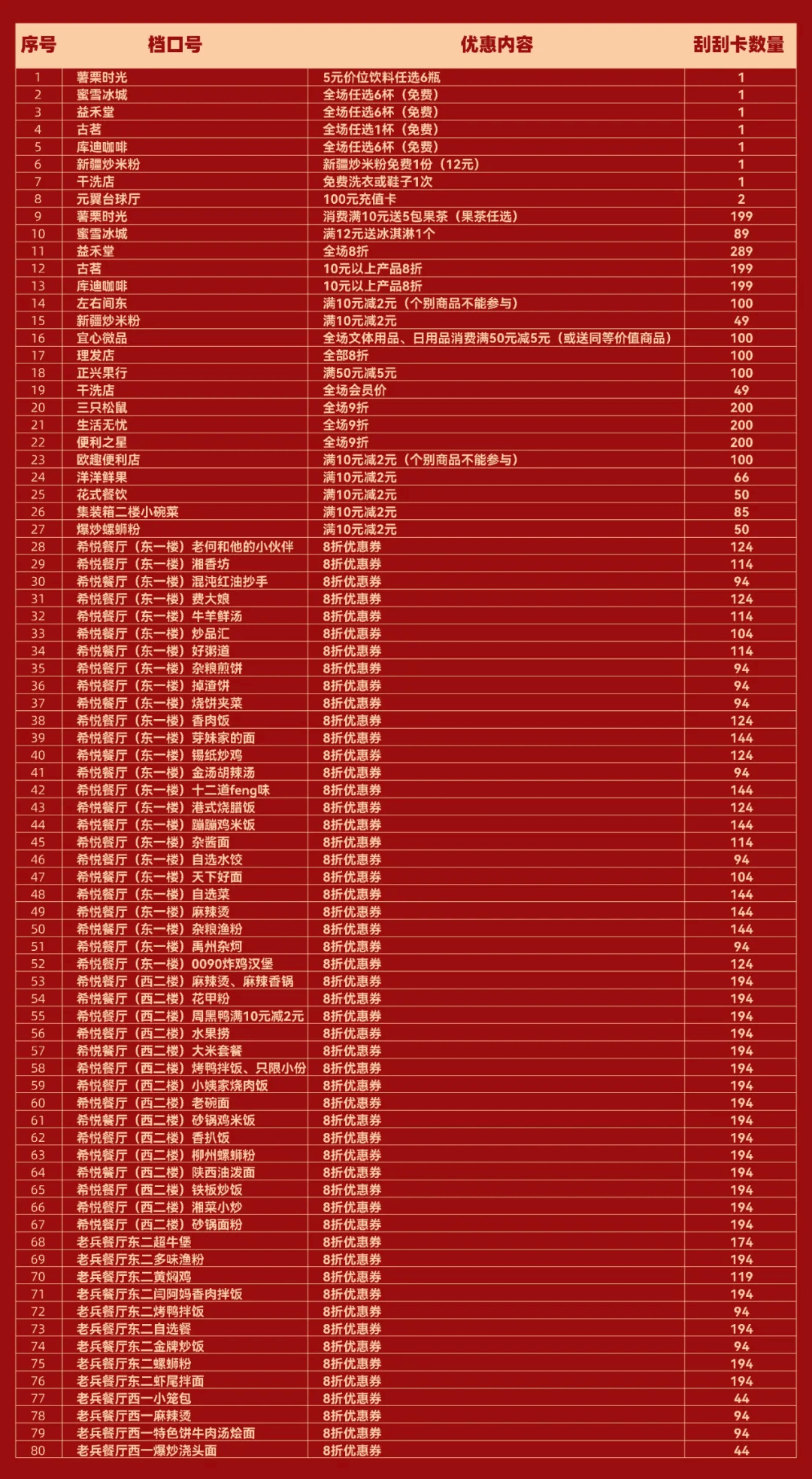 3月6日起,开学期间,在以下参与活动的校内商户消费,即可获得“开学刮刮卡”一张。轻轻一刮,隐藏福利立刻揭晓,数量有限,先到先得!