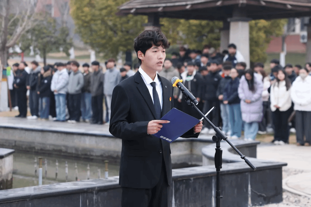 “青年强,则国家强;技能兴,则产业兴。”优秀学生代表、电子信息工程学院2024级电气自动化技术6班的夏利发同学在国旗下发言。