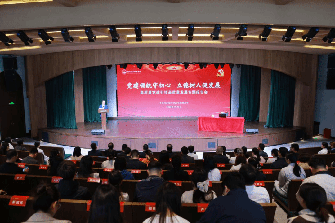 为深入学习贯彻中共河南省委教育工作委员会近期关于全面加强高校党建工作的会议精神,牢固树立和践行正确政绩观,以高质量党建引领学校事业高质量发展,4月15日,郑州城市职业学院举办高质量党建引领高质量发展专题报告会。执行校长黄炜、校党委副书记徐洪波等党政领导班子成员、全体党务工作者、党员代表、入党积极分子代表参加会议。校党委副书记徐洪波主持会议。