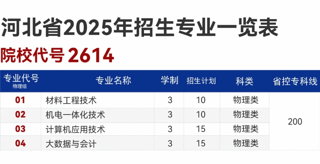 学校河南省统招计划面向艺术高职(专科)批和普通高职(专科)批两个批次。其中,艺术高职(专科)批次面向音乐类、美术类4个艺术专业招生,招生计划为300人;普通高职(专科)批次面向37个专业招生,招生计划为1973人;河北省和山东省统招计划80人,专业为计算机应用技术、新能源汽车技术、大数据与会计、机电一体化技术、材料工程技术。