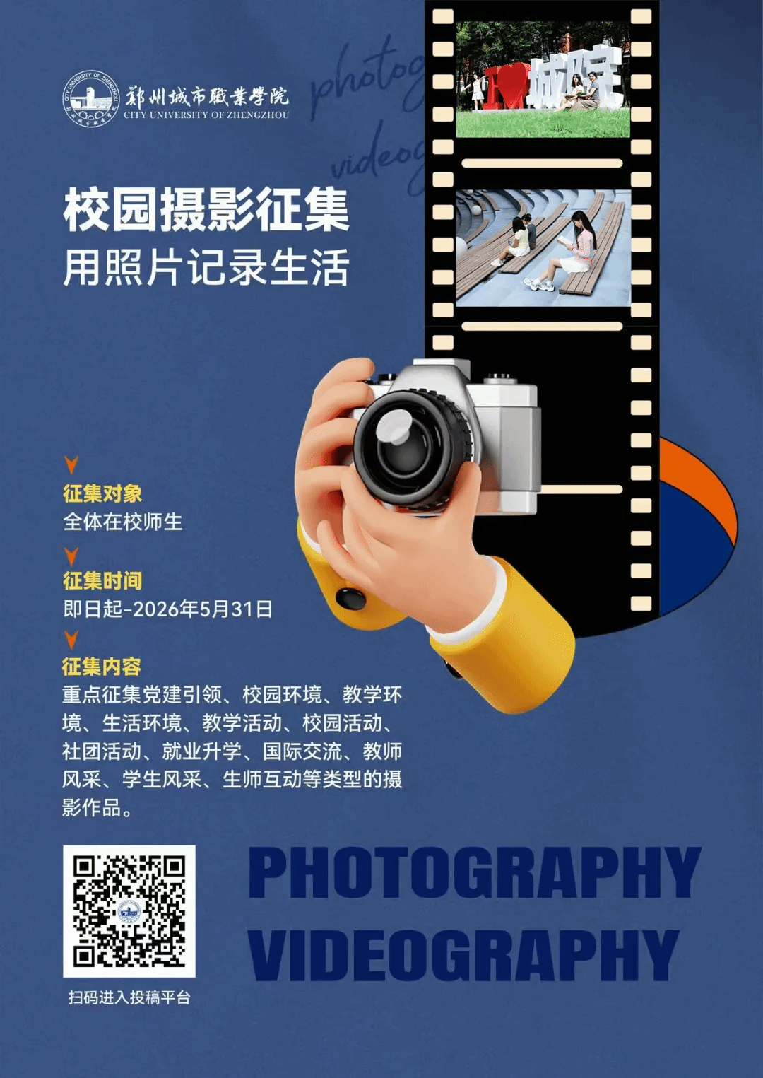 重点征集党建引领、校园环境、教学环境、生活环境、教学活动、校园活动、社团活动、就业升学、国际交流、教师风采、学生风采、生师互动等类型的摄影作品。