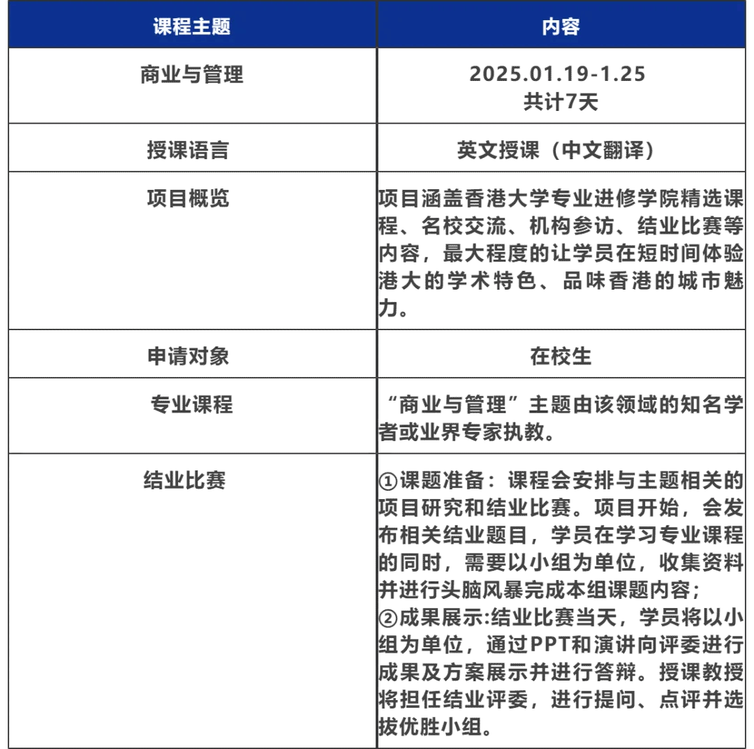 我们诚挚邀请您加入“2025香港大学商业与管理项目”7天6晚