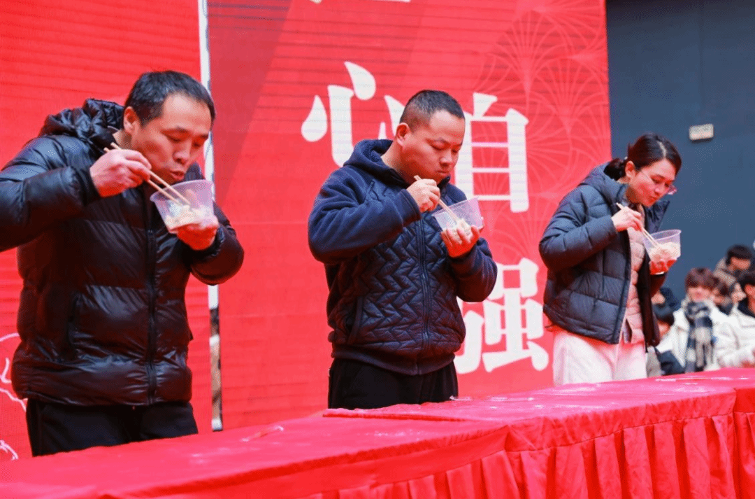 比赛现场紧张而有序,每个选手都全神贯注,争分夺秒,力求在最短时间内完成最多的饺子。观众们的加油声、比赛哨声、面粉的“沙沙声”交织在一起,营造出紧张又欢乐的比赛氛围。这场比赛不仅是速度与技巧的较量,更是团队协作和校园文化的生动体现。