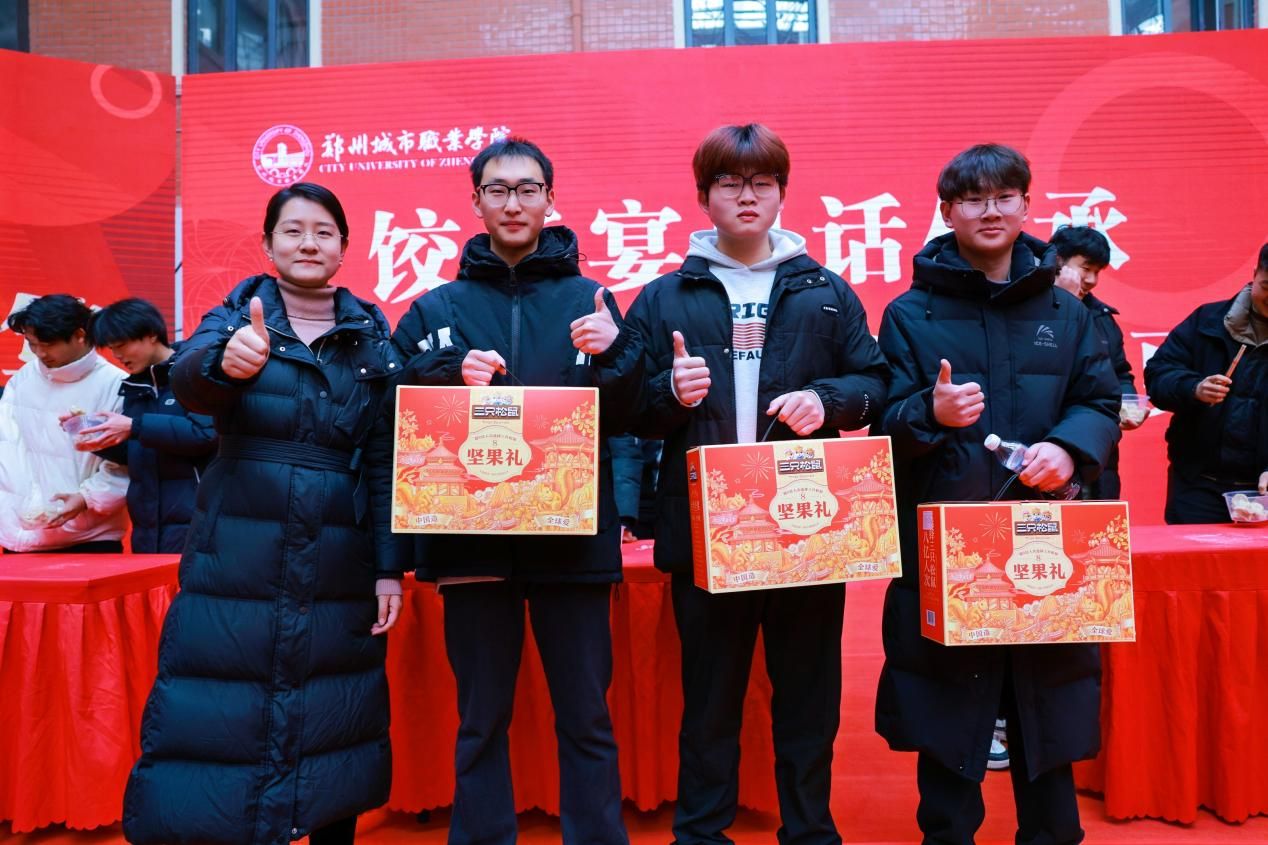 在“食不我待”——快速吃饺子比赛环节,城院的“王子”和“公主”们展开了速度与活力的比拼!活动现场弥漫着饺子的香气,也洋溢着师生们的欢声笑语,经过五轮激烈的比赛,校领导为获得“饺子王子”称号的师生颁发奖品。这场挑战赛中,我们品尝的是饺子的美味,收获的是荣耀与友谊,这些都成为城院冬至中最温暖的记忆。