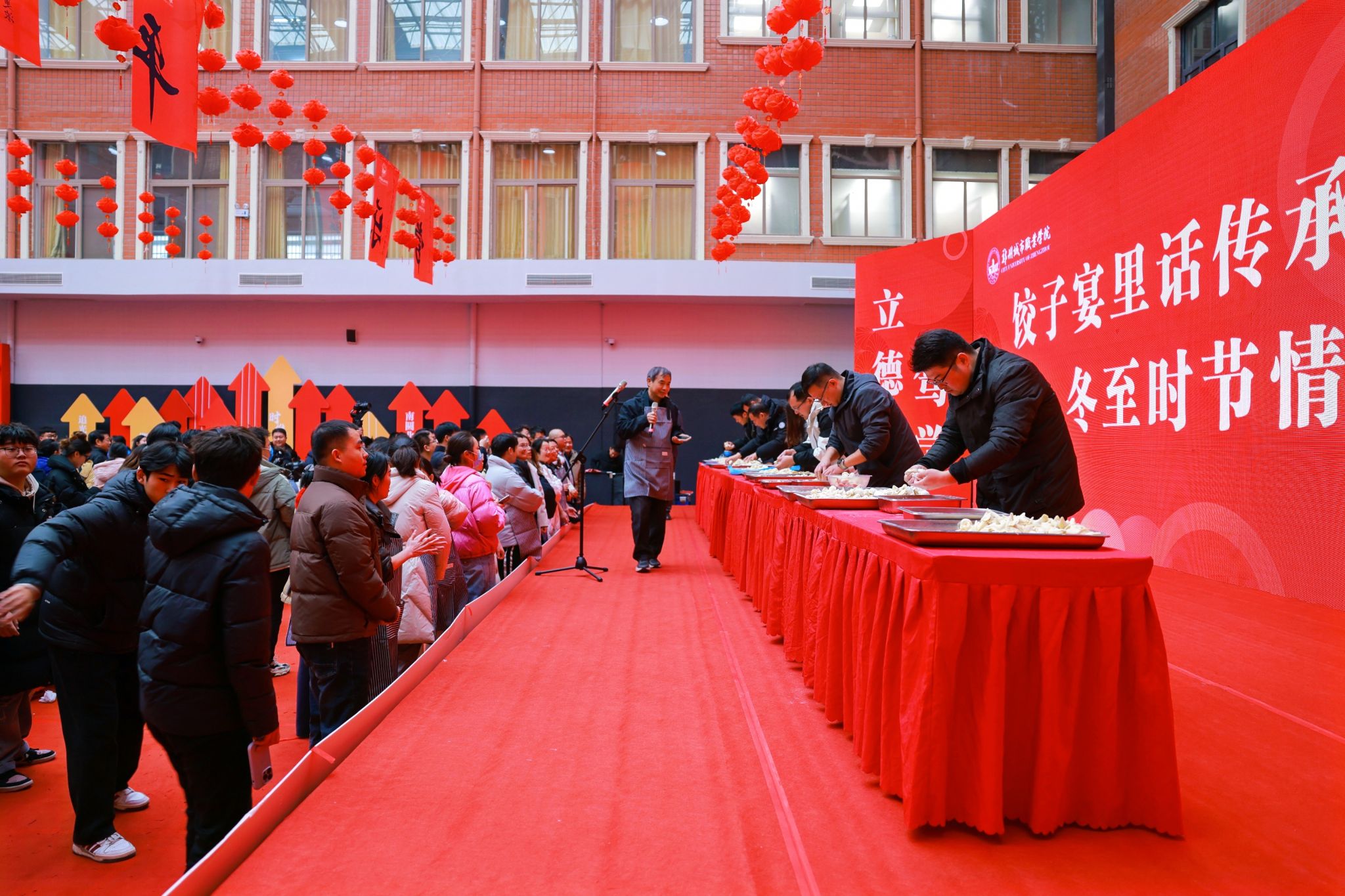 在致辞中,武子文首先向全体教职员工及全校学生,致以最诚挚的节日问候和最美好的祝愿,她表示,冬至作为中华民族的传统节日之一,承载着深厚的文化底蕴和家国情怀。学校始终坚持"以文化人、以文铸魂"的理念,致力于用优秀传统文化力量滋养学生心灵,培养学生成才。举办本次活动,是我校贯彻落实铸魂育人工作的生动实践,传承弘扬了中华优秀传统文化,增强了文化自信和民族自豪感。学校将坚持全面贯彻党的教育方针,充分发挥高校党建、工会建设、团学活动在育人工作中的核心作用,为育人工作注入强大动力,培养更多胸怀大志,有责任、勇担当的时代新人。