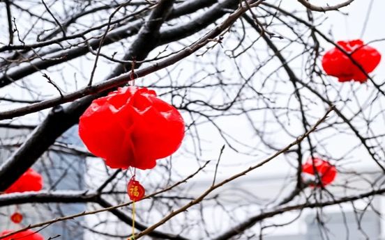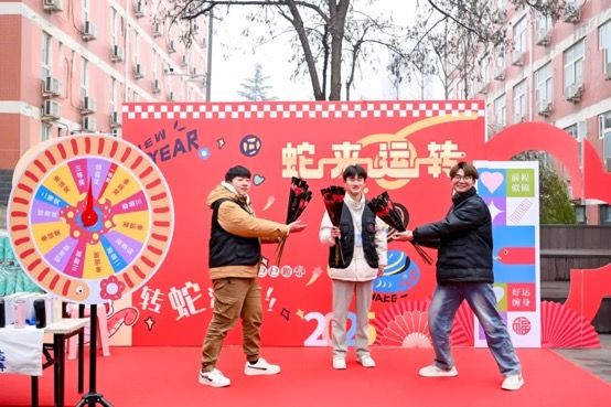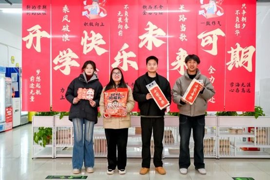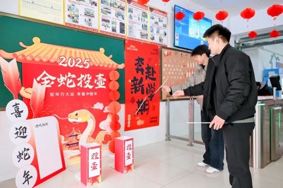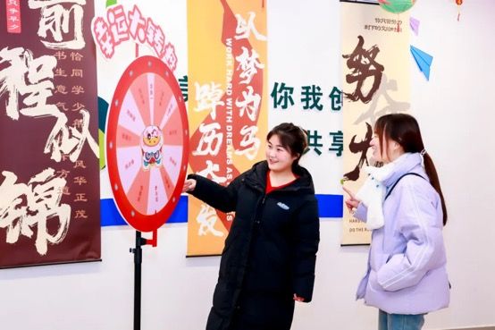 宿舍大厅的“福气迎春神”、“福气摘喜糖”