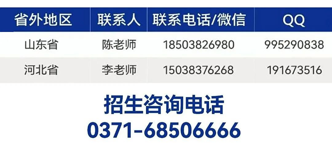为更好地服务省外考生及家长,郑州城市职业学院招生办公室特设省外地区负责人。考生如果在录取查询或相关环节有任何疑问,可根据自己所在地区,直接联系对应省份的招办老师,他们将为您提供专业、详细的解答!